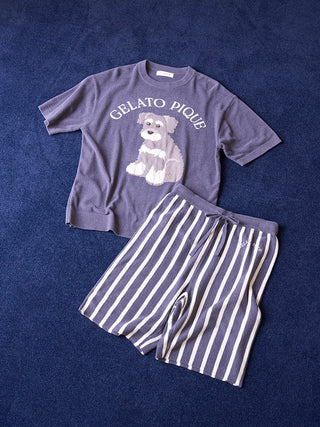 MEN's Airy Moco Dog Jacquard Pullover & Shorts Set
