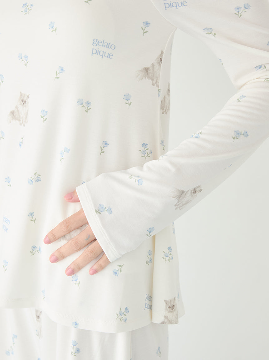 [Spring Pullover mixing cute cats and flowers]