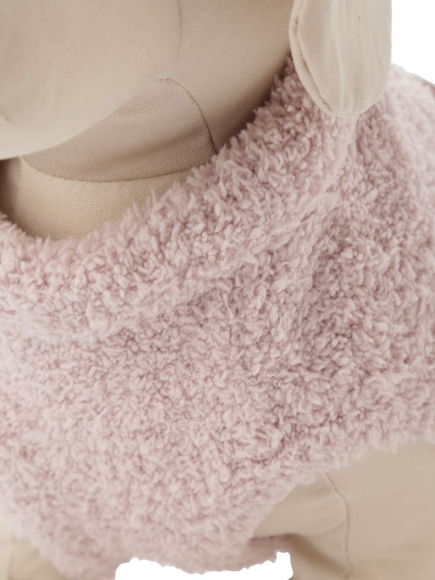 features a soft, fluffy texture. Its warmth and lightness make it comfortable to wear.