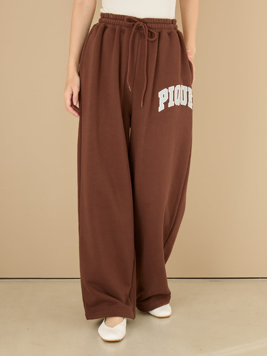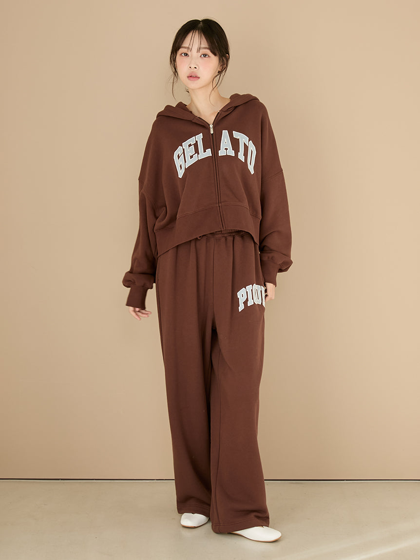 This casual fleece series features a catchy college-inspired logo appliqué. The long pants boast a trendy curved silhouette with a wide fit. They include a drawstring at the hem, allowing you to adjust the fit to your preferred look. The soft, non-stiff fleece fabric makes them ideal for long journeys like flights. Available in two subdued colors: brown and navy. Pair them with the matching hoodie from the same series or the NY Brunch One-Point T-shirt releasing at the same time.