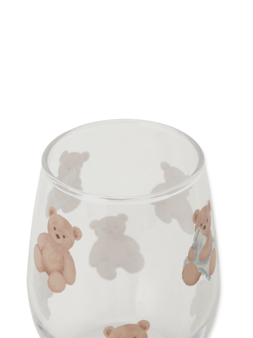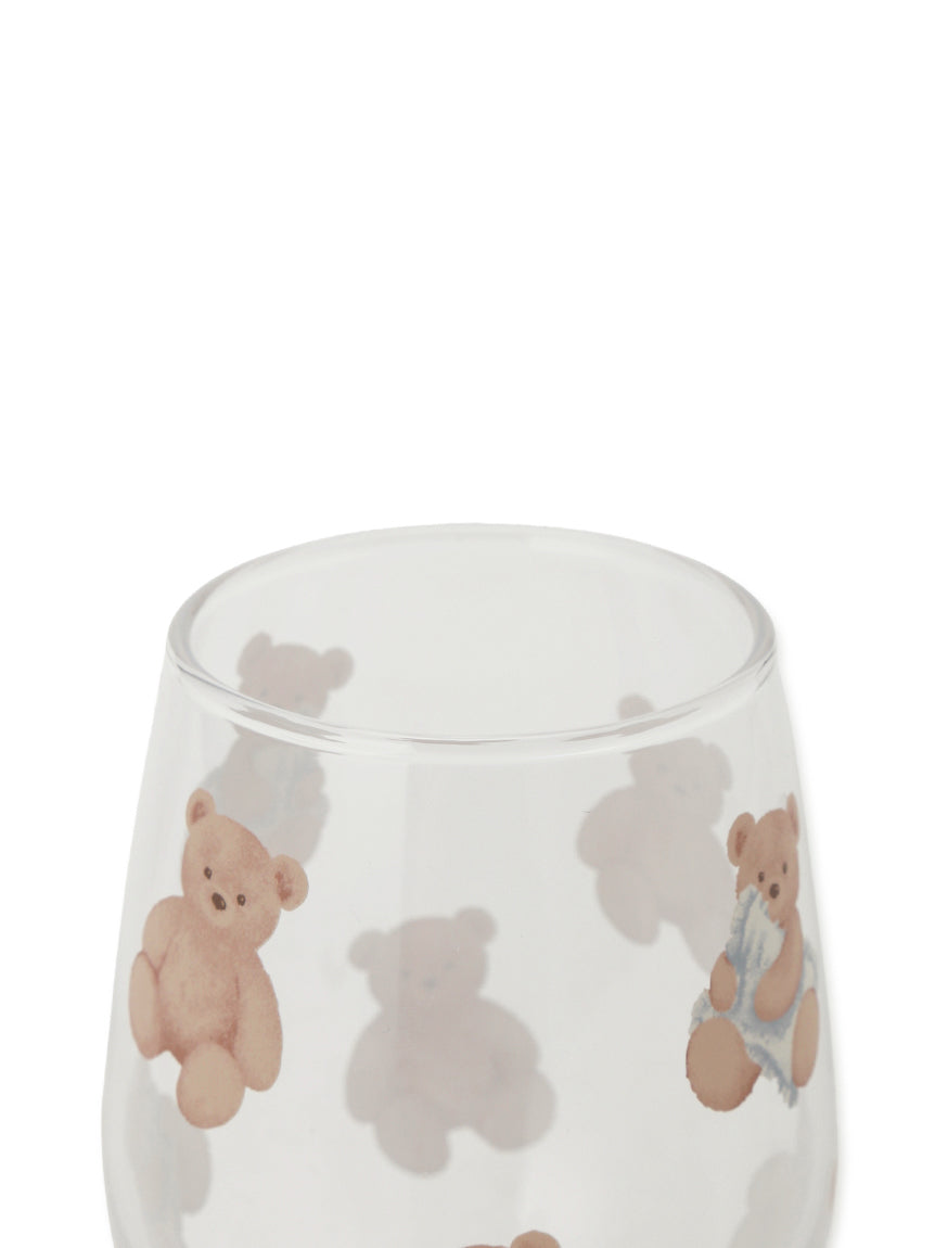 A small drinking glass with different prints of bear, ranging from sitting to holding a pillow. Perfect for your breakfast orange juice, as well as any other drinks that you like. Add this cute item to your home, or share the love to a family or friend.