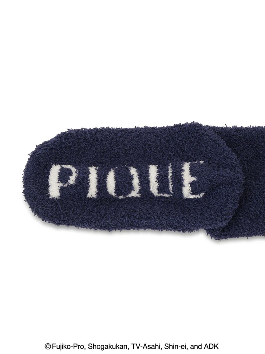 Made from fluffy and gentle Baby Moco fabric, these men’s socks feature an appliqué embroidery of Doraemon’s “Happy” expression, with a plump and cozy texture that feels as cheerful as it looks. The soles are decorated with large jacquard logo detailing for a casual finish, while a colorful woven label adds a subtle accent. Pair them with matching loungewear from the same series, or enjoy a coordinated couple’s look with the women’s version.