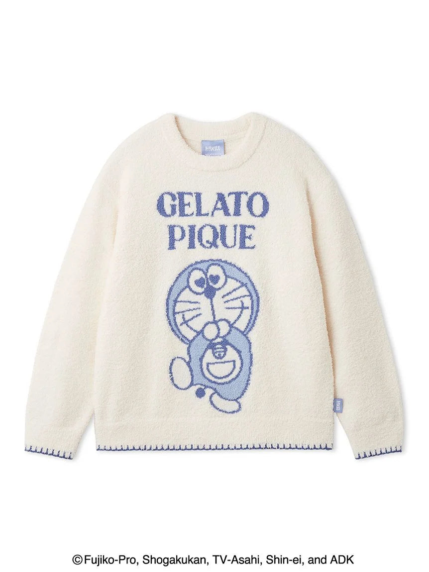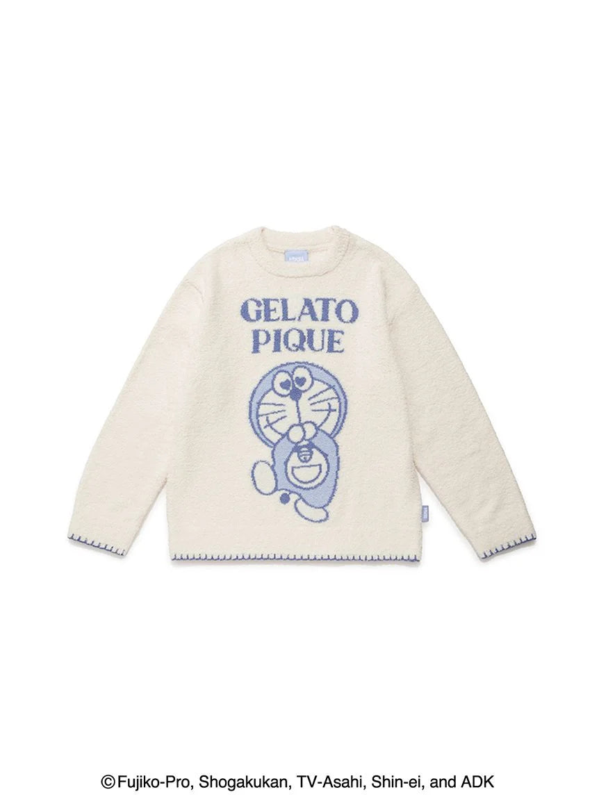 Made from soft and fluffy Baby Moco fabric, the pullover wraps you in warmth and comfort. Thoughtful details such as blanket stitching on the cuffs and hem, along with an original woven label, add a warm, handcrafted touch. This item is available in four colors: blue with joyful Doraemon, light blue with an angry Doraemon, pink with a tearful Dorami, and red with a cheerful Dorami. Enjoy pairing this item with the matching long pants, or create coordinated looks with your loved ones!