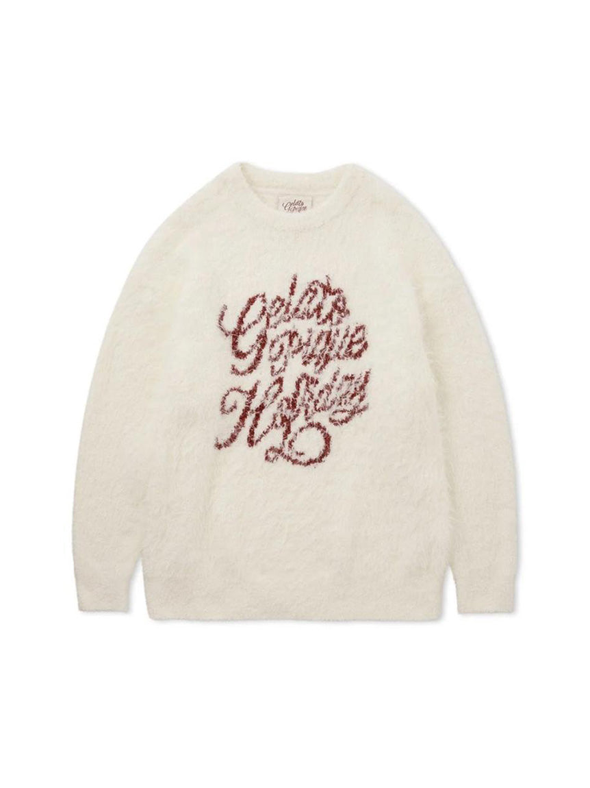 The sweater is adorned with the intricately embroidered "Gelato Pique Holiday" logo in a festive script, adding a touch of seasonal sophistication. The crew neckline and ribbed cuffs ensure a snug yet comfortable fit, while the feather-textured material provides an airy feel without compromising on warmth. Available in classic holiday shades like deep red and cream, this pullover pairs effortlessly with matching pajama pants or your favorite casual wear.