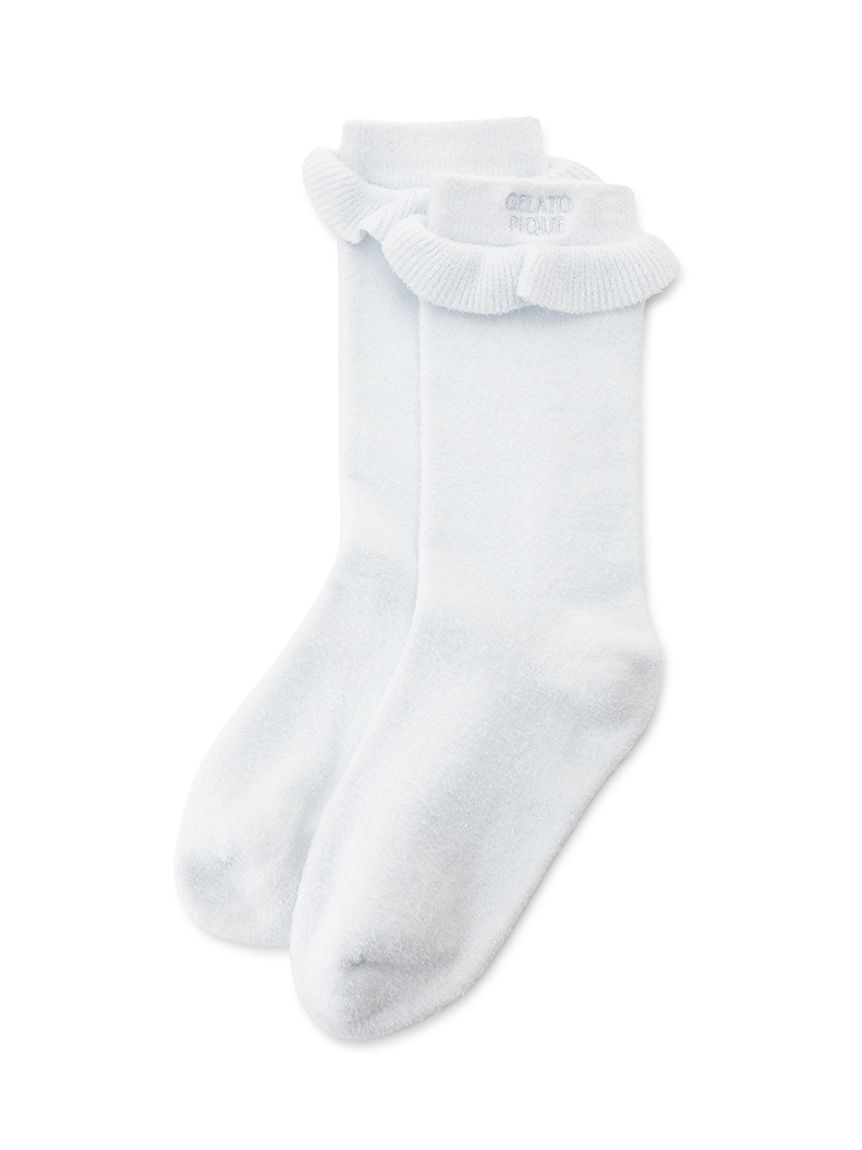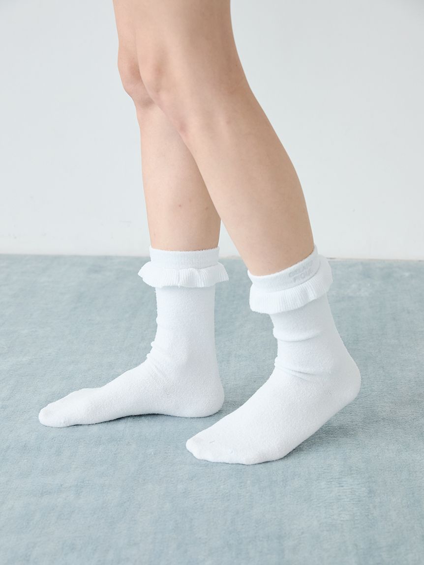 These socks combine the softness of Airy Moco with the smoothness of Smoothie fabric. The feminine design, featuring a single embroidered detail and ruffles at the opening, adds a touch of glamour to your feet. Available in three colors: navy, soft blue, and pink, this pair of socks would be great both for yourself, or as a gift to your loved ones.