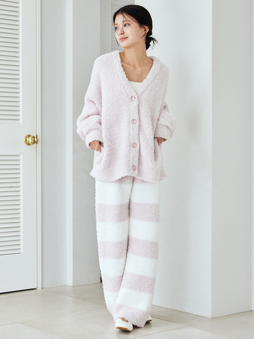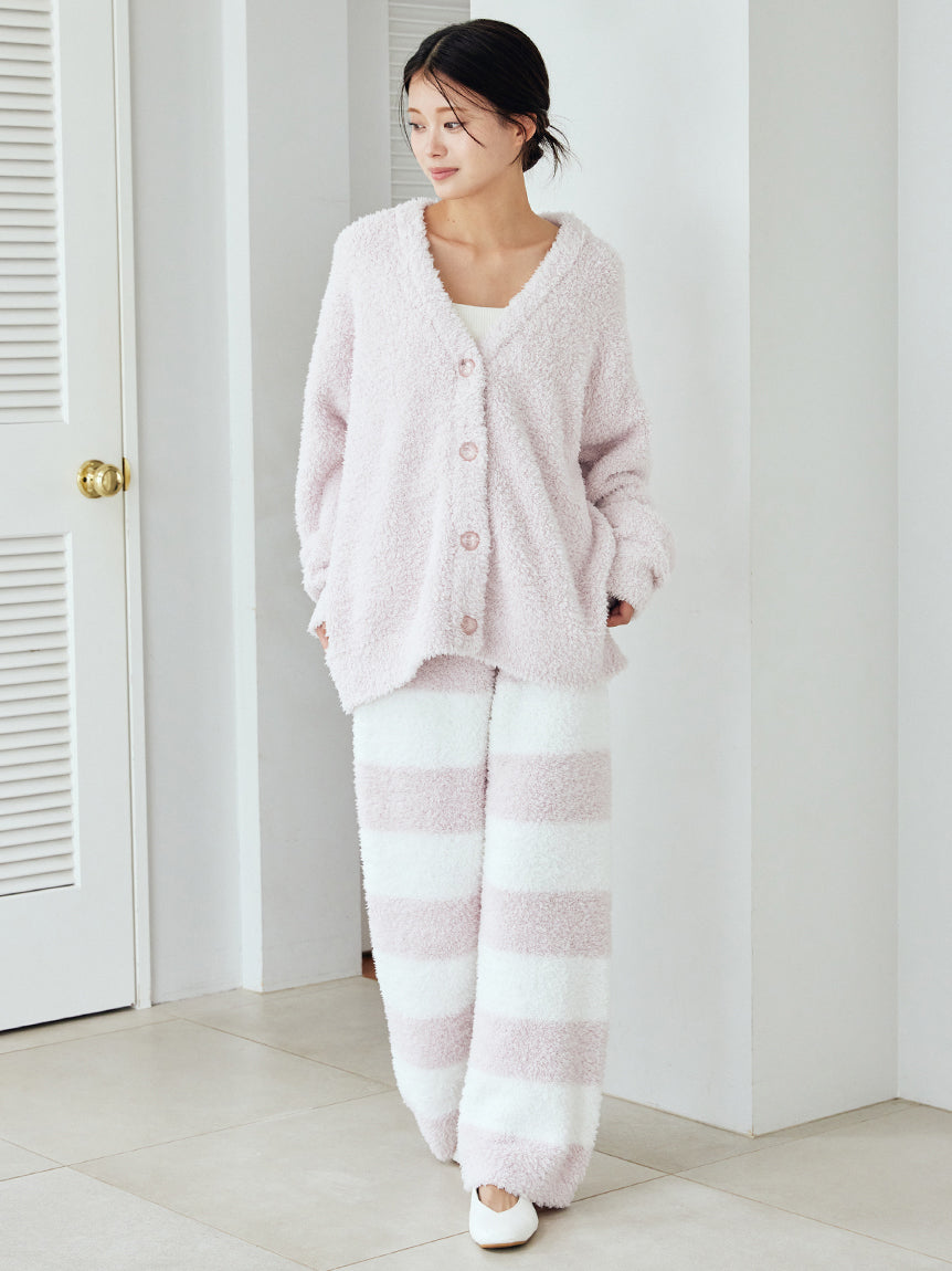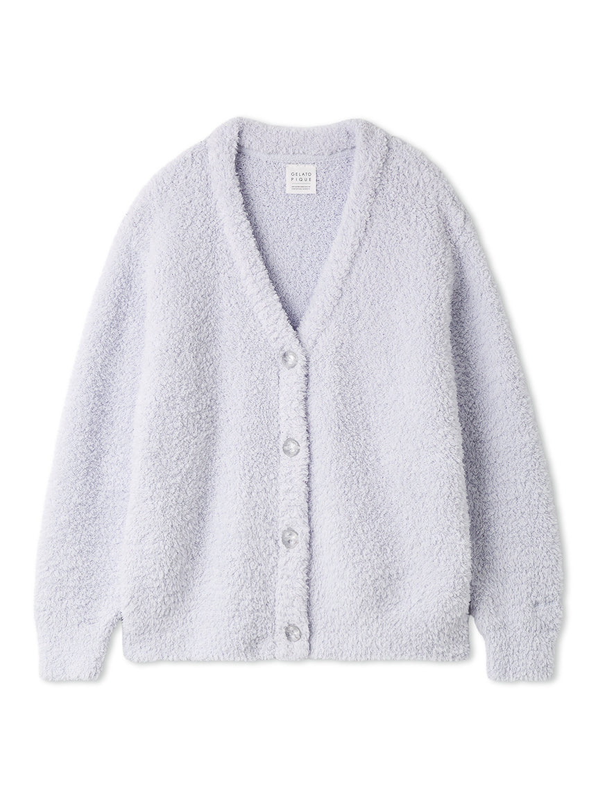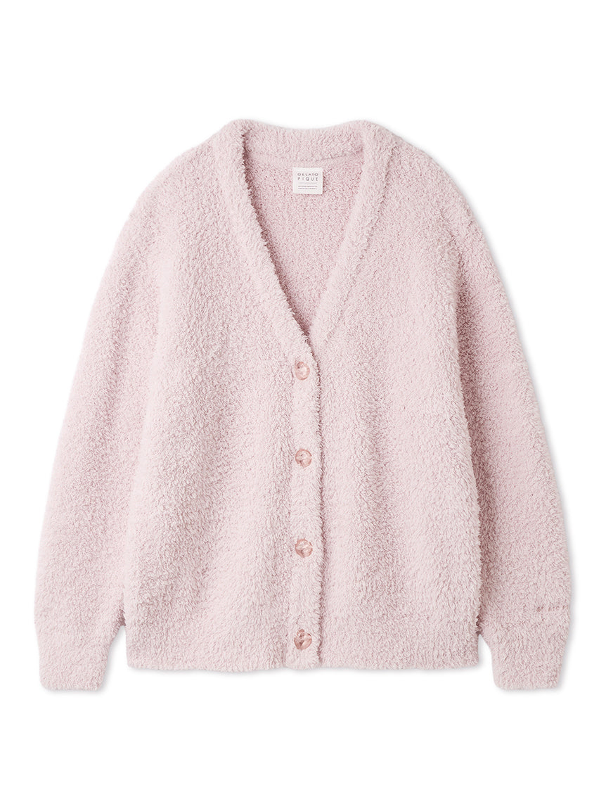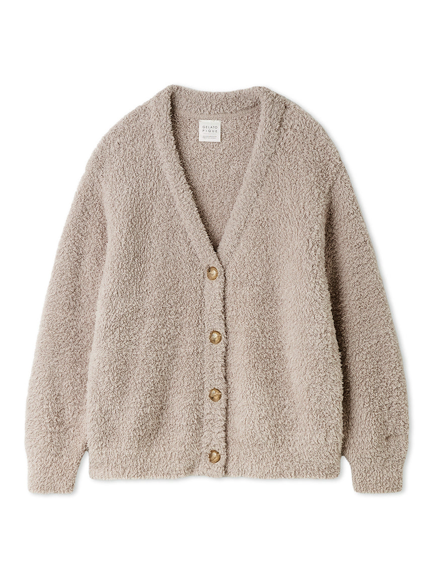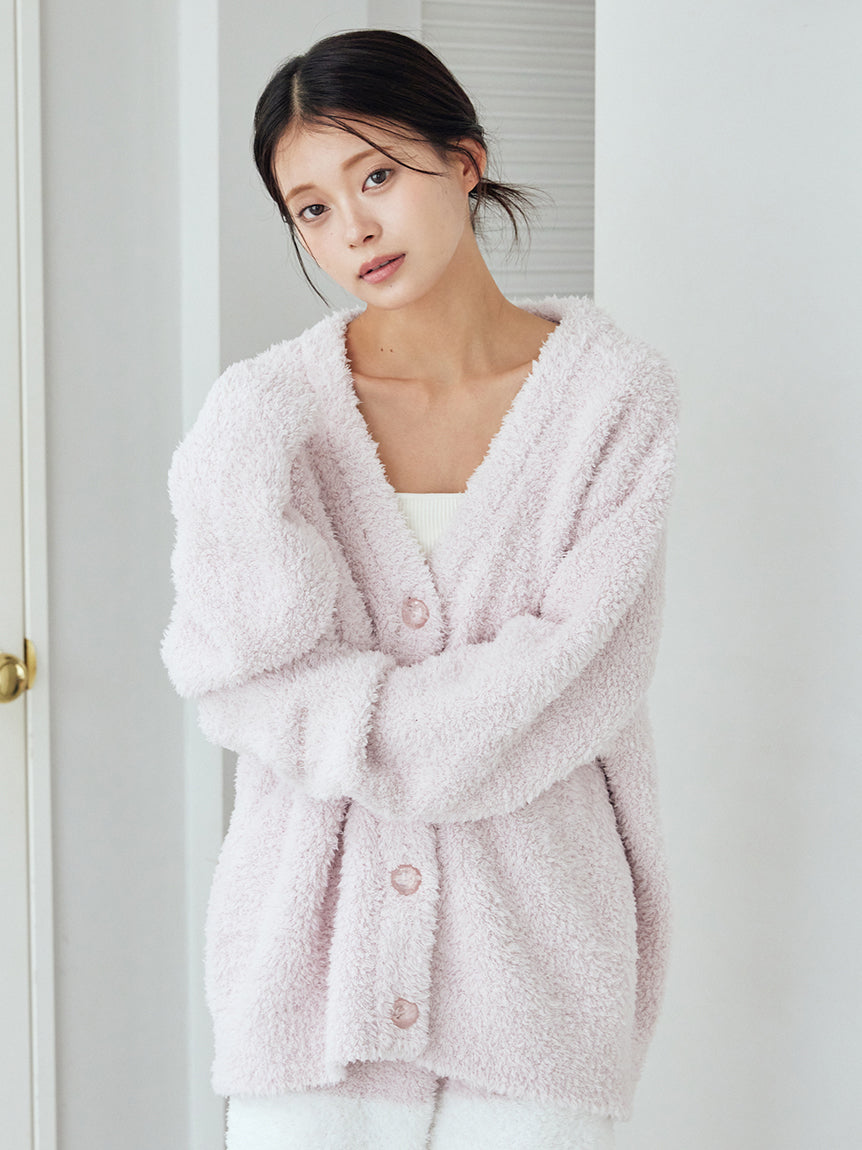 This warm-color cardigan, made from the classic fluffy Gelato material, features rich, deep hues perfect for the autumn and winter seasons. The relaxed, cozy fit makes it easy to throw on, while the shimmering buttons engraved with the brand logo add a charming touch. A subtle embroidered logo accents the left cuff. Available in three colors—pink, blue, and mocha. It pairs beautifully with other items released during the same season.