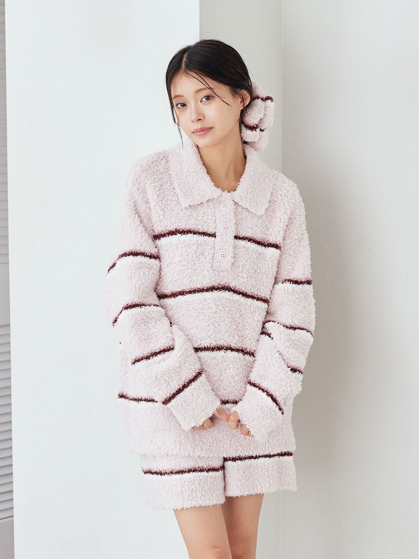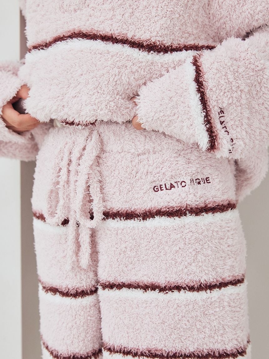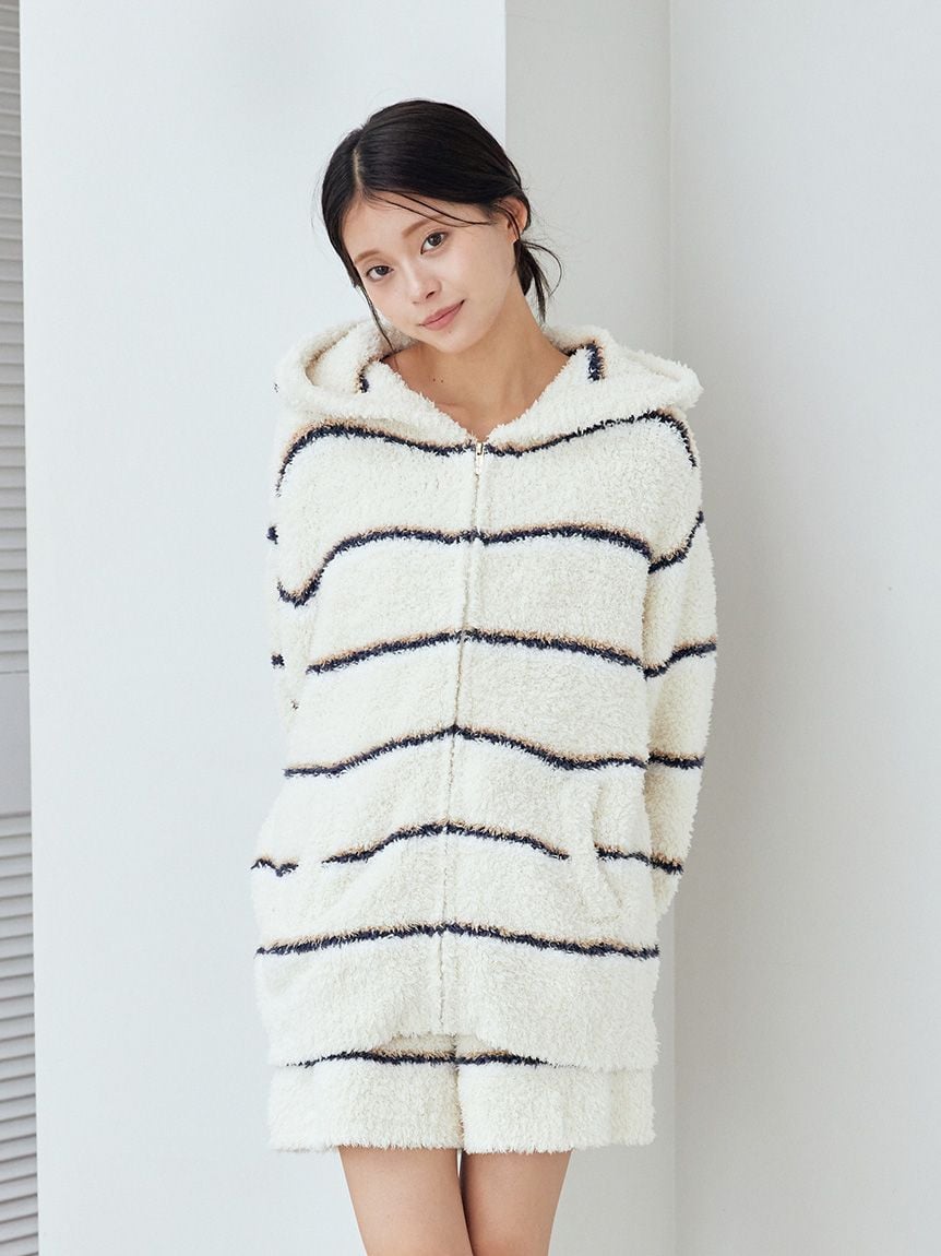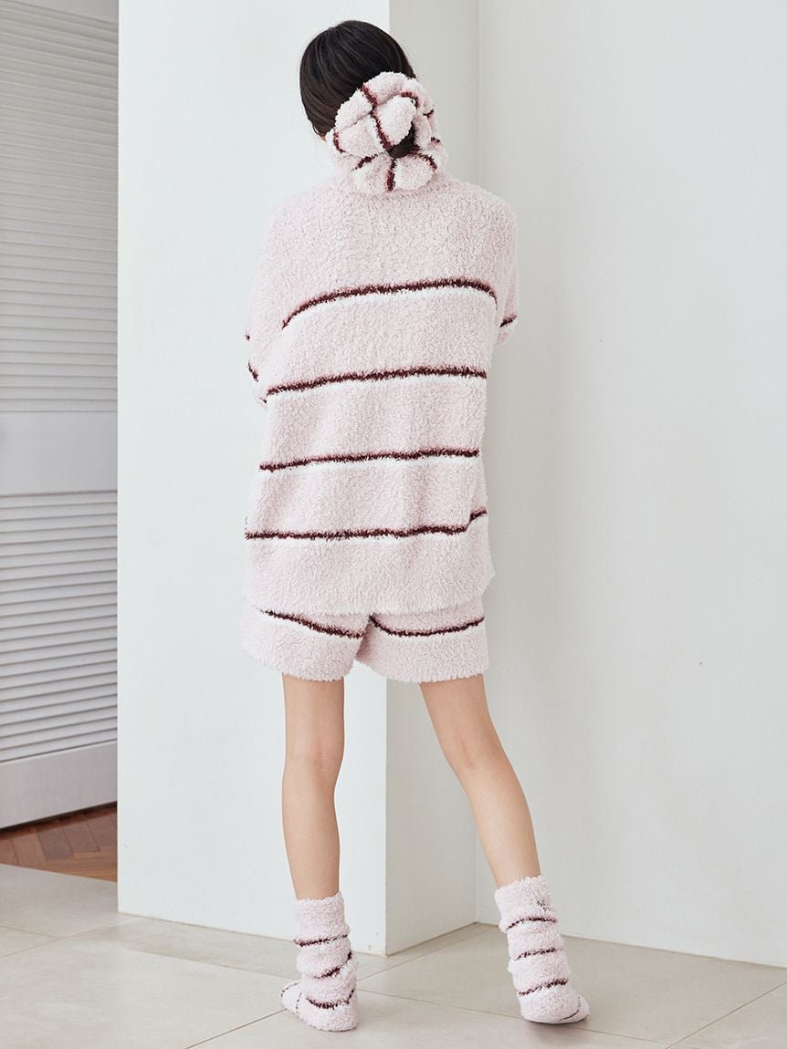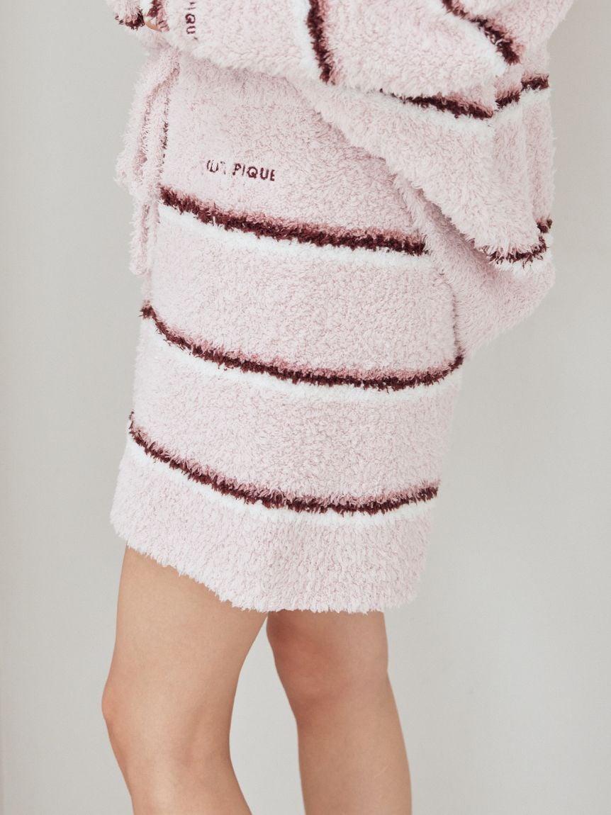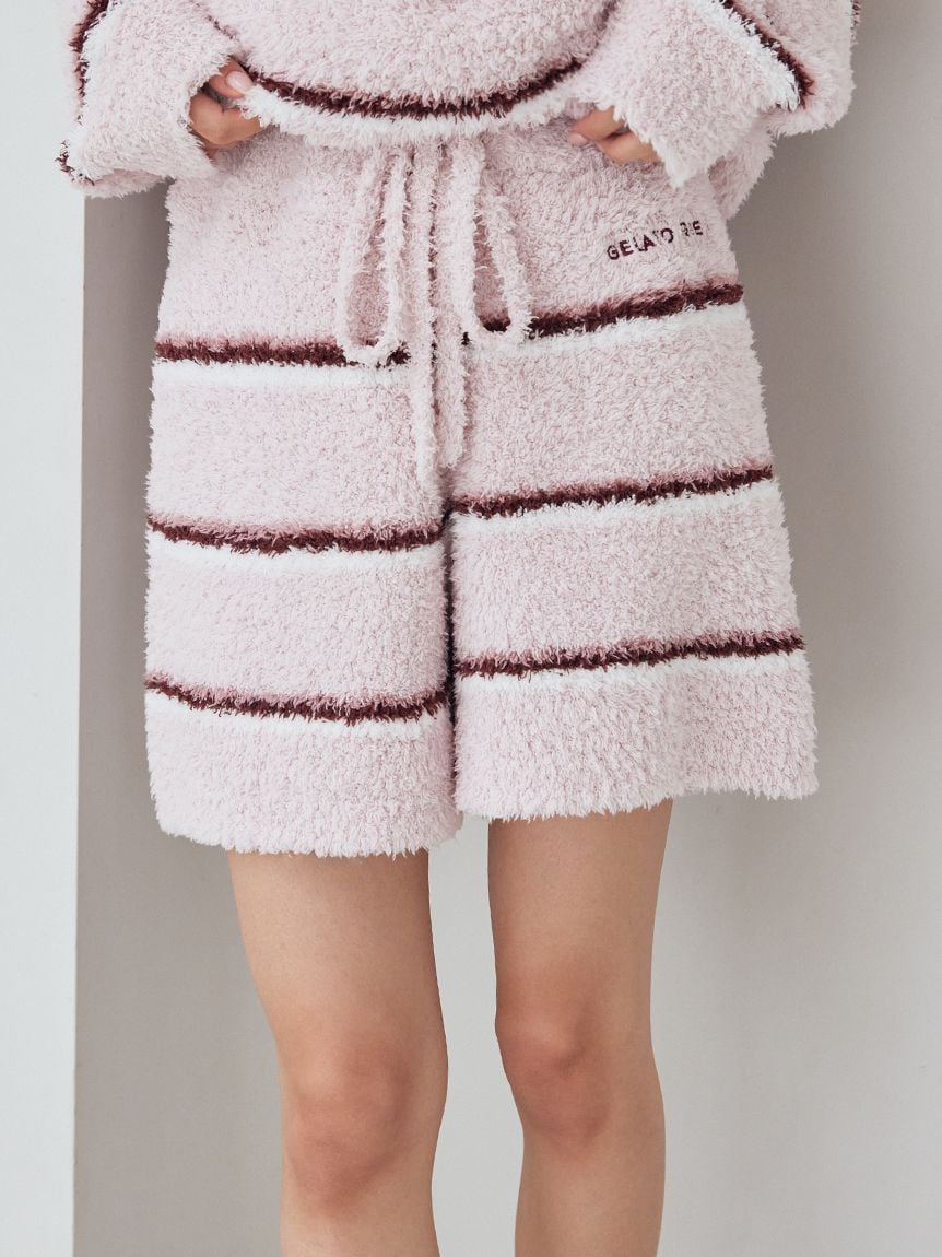 This series features a trendy fine-pitch stripe pattern in the fluffy, long-pile "Gelato" fabric. These shorts are also recommended for keeping your waist warm and are fluffy and comfortable to wear. The subtle stripe pattern is accented with a bold color scheme for a modern, school-inspired look. Available in three colors: sweet gelato-inspired ivory, pink, and blue. Pair with tops and accessories from the same series.