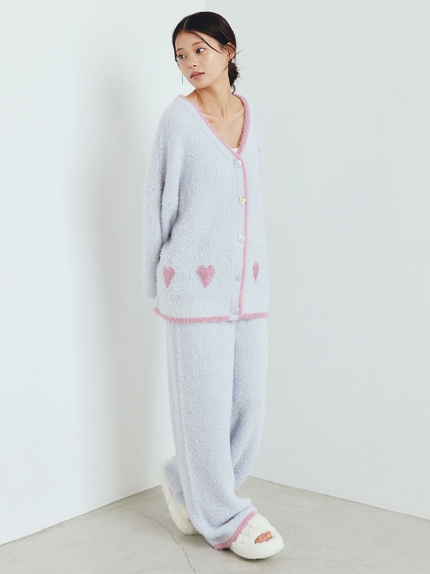 [Soft and cozy long pants made with glitter-infused feather knit]