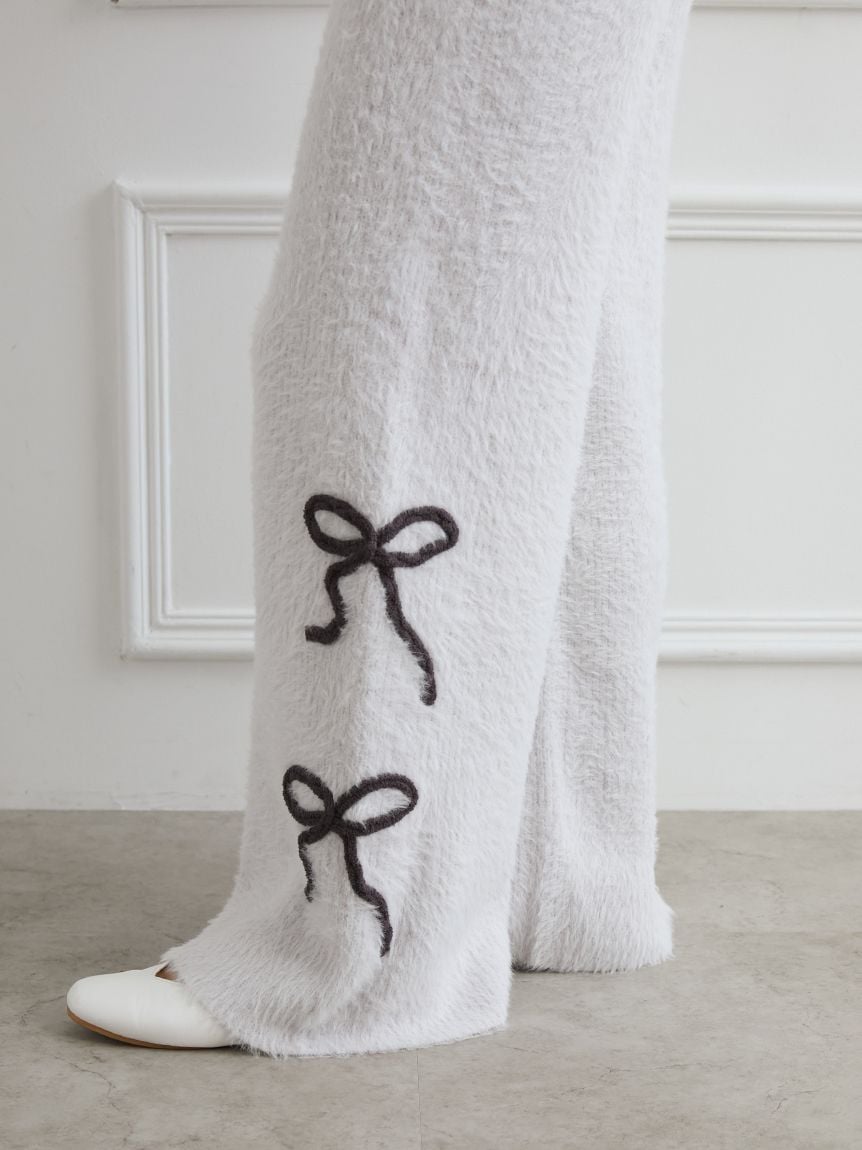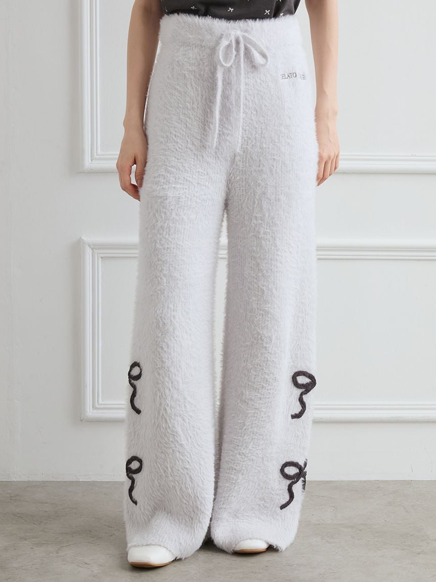 [HALLOWEEN Soft Feather Knit Ribbon Long Pants]