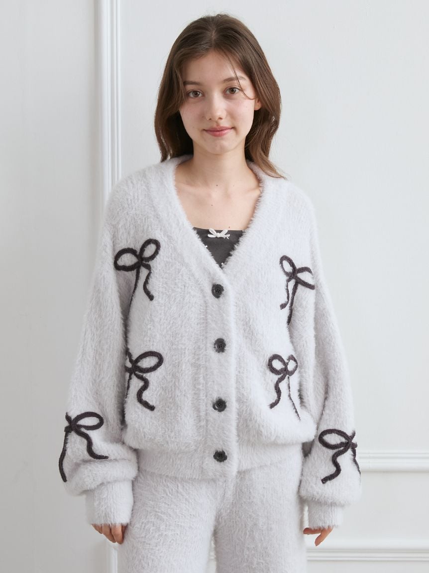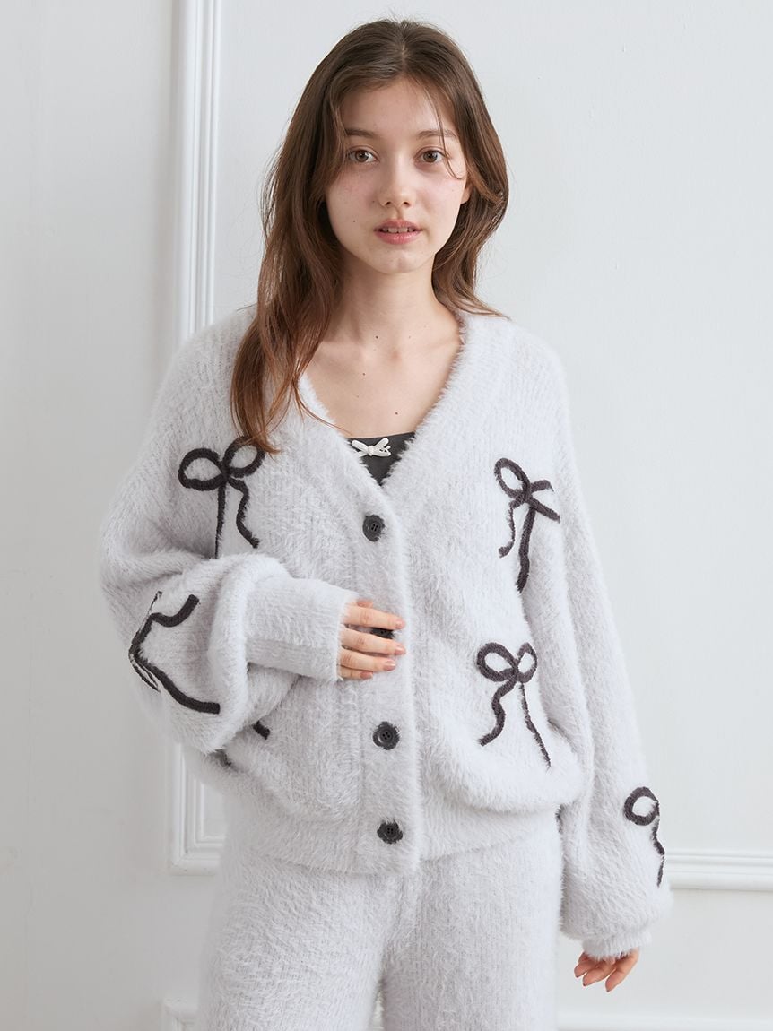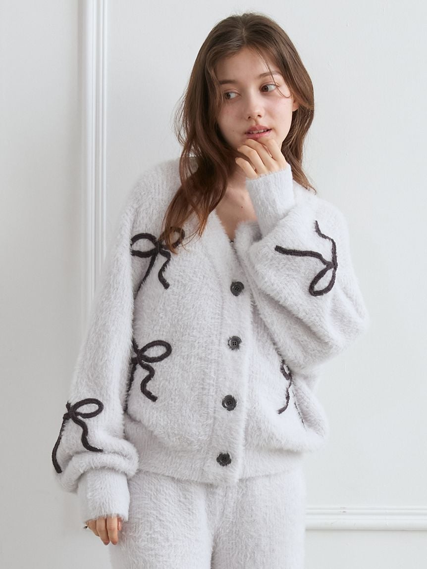 This year's HALLOWEEN COLLECTION features a feminine monotone style featuring trendy ribbon patterns. These long pants feature feather-light feather knit with a sewn-on puffy, three-dimensional ribbon. The slightly flared silhouette creates a sleek, sleek leg. The brand logo is subtly embroidered on the left hip. We recommend pairing them with the cardigan from the same series.