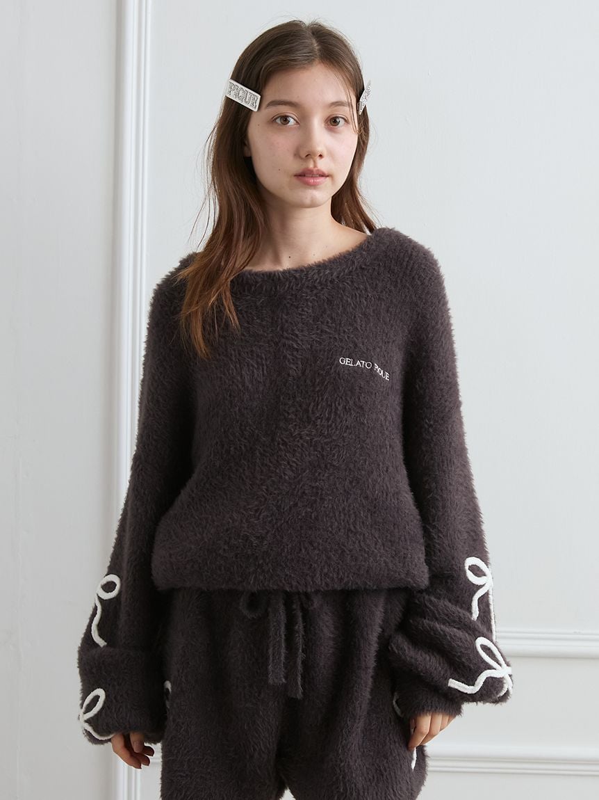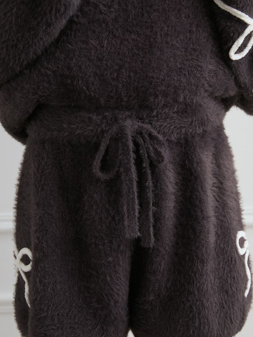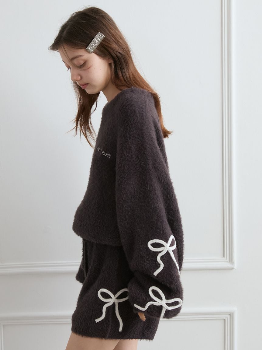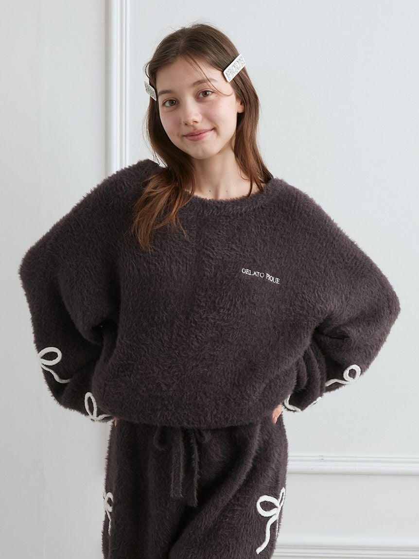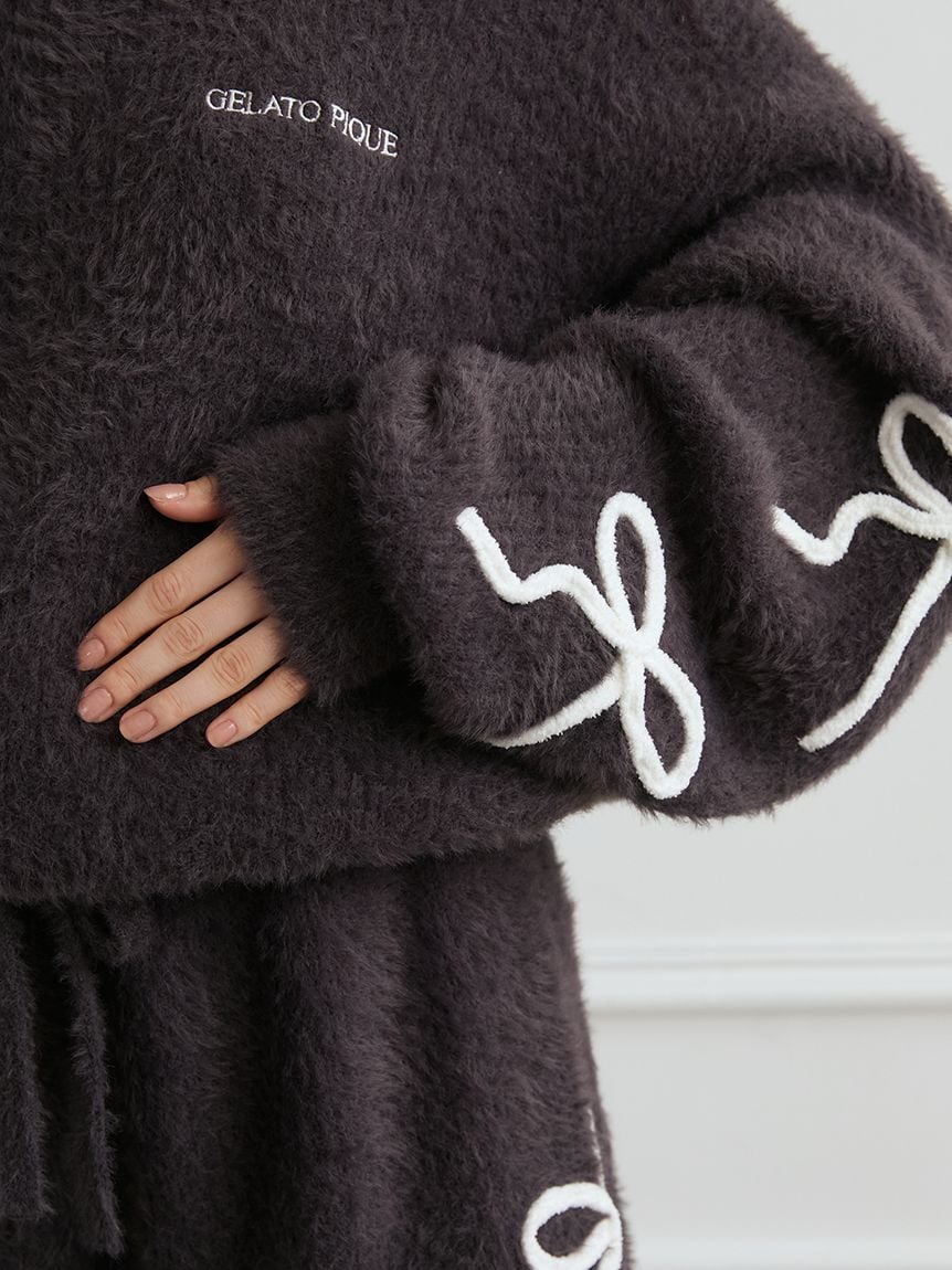 This year's HALLOWEEN COLLECTION features a feminine monotone style featuring trendy ribbon patterns. This romper features a feather-light feather knit with a sewn-on puffy, three-dimensional ribbon. The wide opening at the back with a tie makes it easy to put on and take off, and it's a cute, one-piece design. The brand logo is subtly embroidered on the left chest. We recommend pairing it with the cat ear balaclava and leg warmers from the same series.