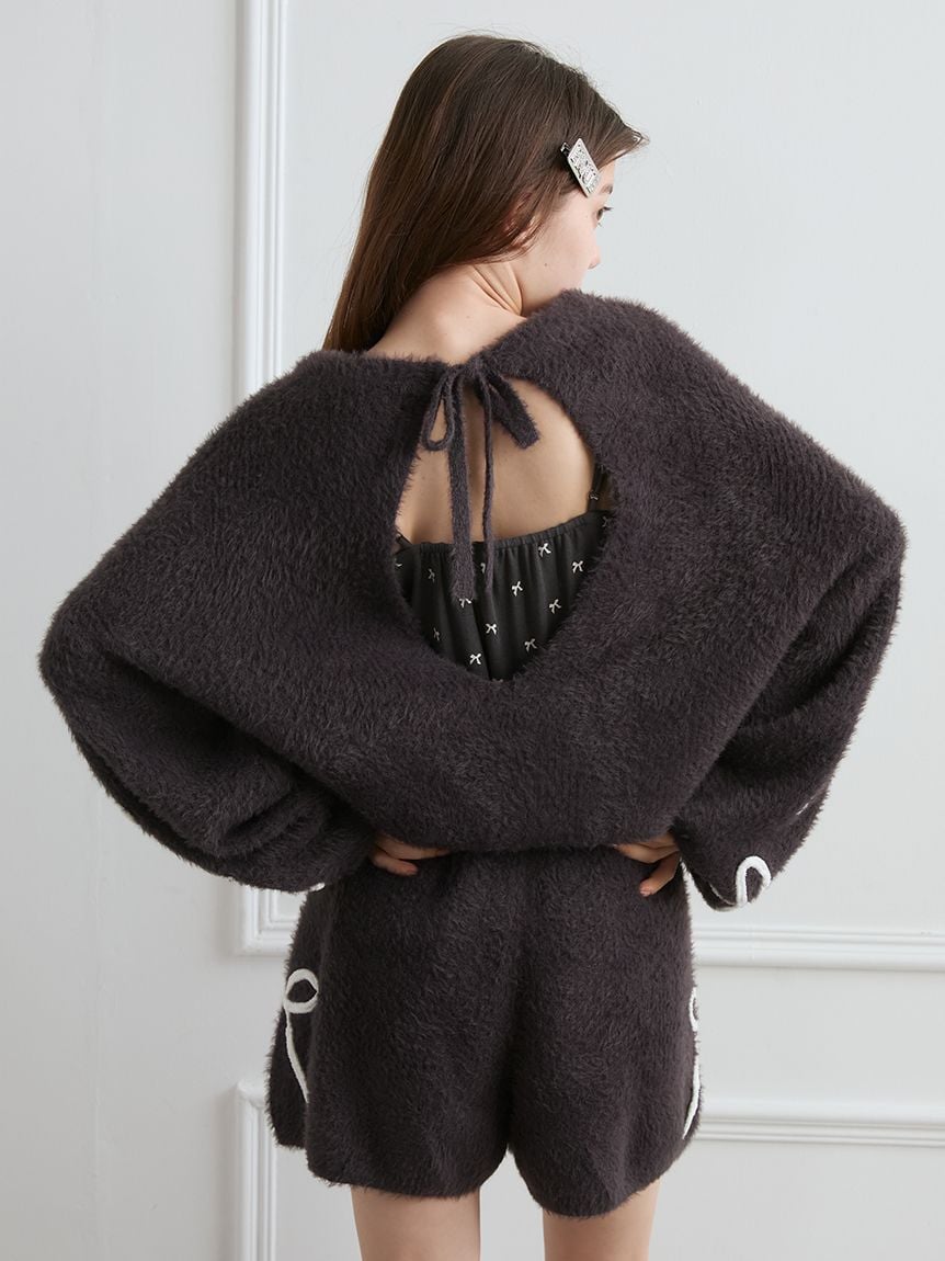 [HALLOWEEN - Cute Feather Knit Ribbon Romper]