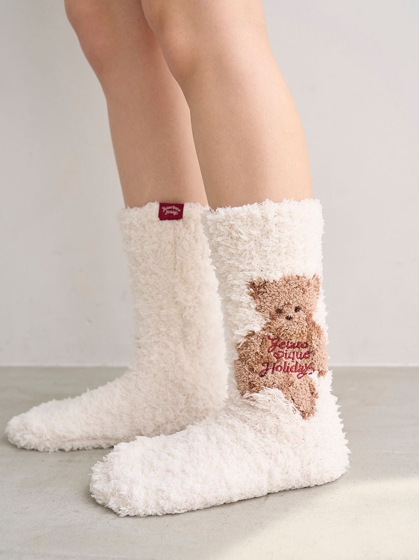 [HOLIDAY Snow Bear Embroidered Room Socks]