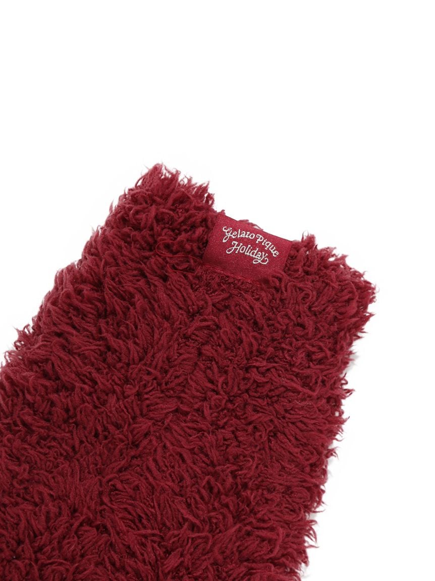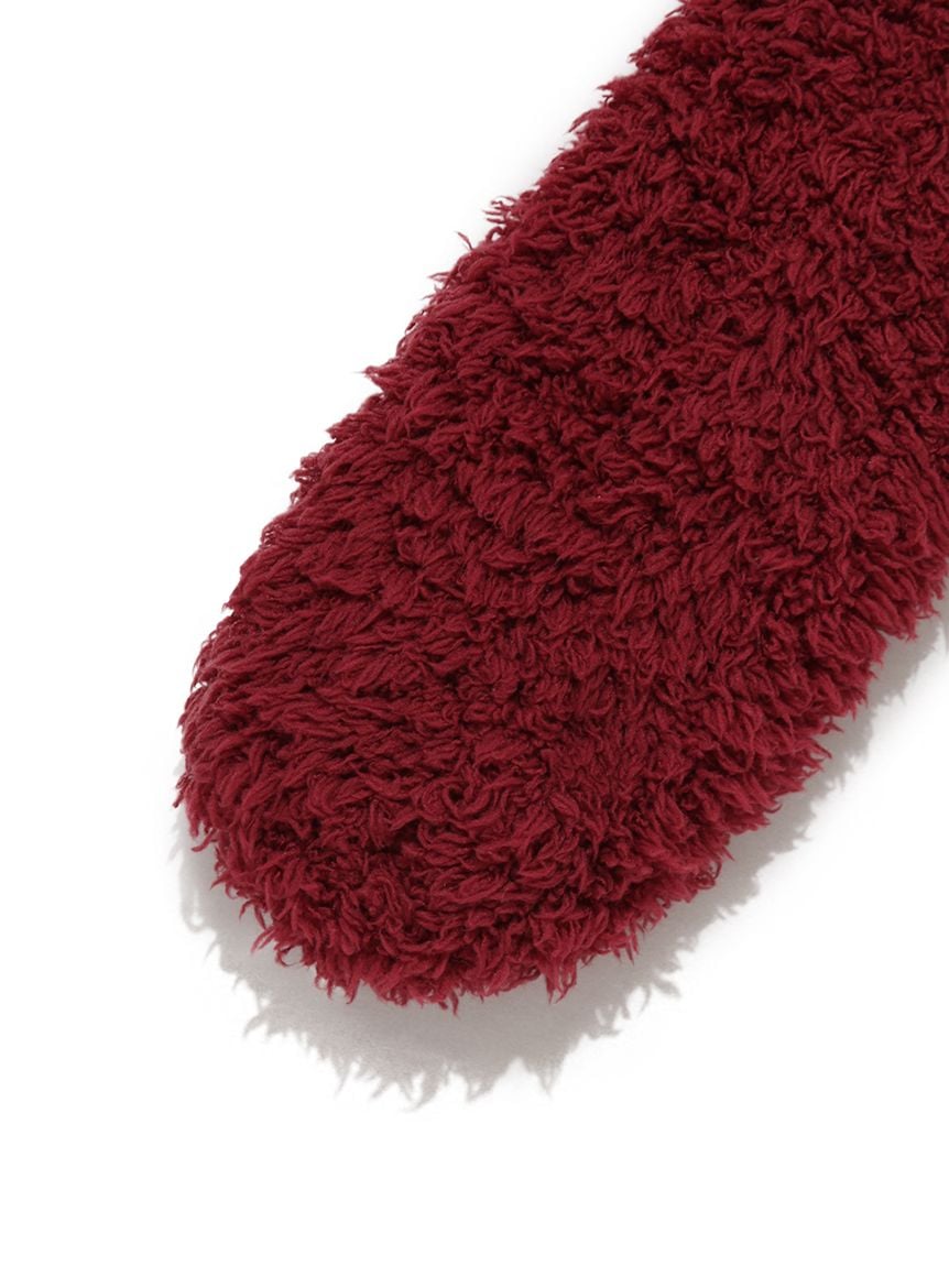 These warm room socks from the Snow Bear series are perfect for cozy holiday seasons spent with family, friends, and loved ones. Crafted from long-pile "Gelato" fabric, they offer a cozy, enveloping feel. A sitting bear is depicted in jacquard with an embroidered logo in the center. Available in ivory, red, and navy, this item is perfect for coordinating with loungewears from the same collection or as a gift. Men's size is also available.