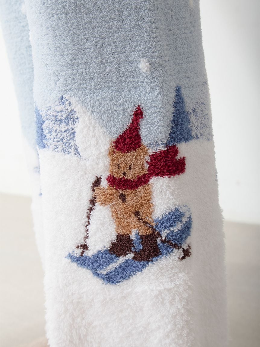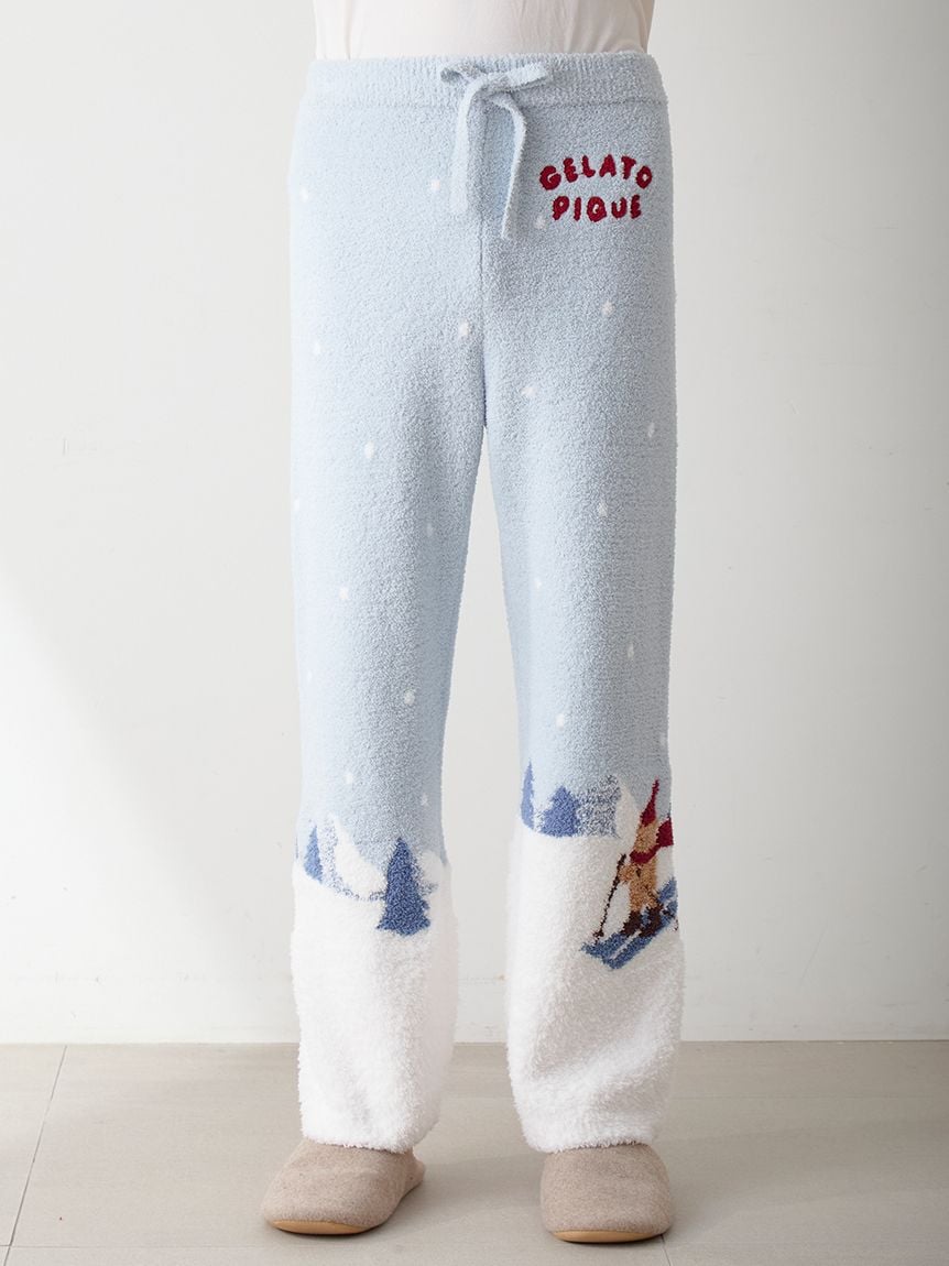 [HOLIDAY - Ski Bear Long Pants with an All-Over Snow Scene]
