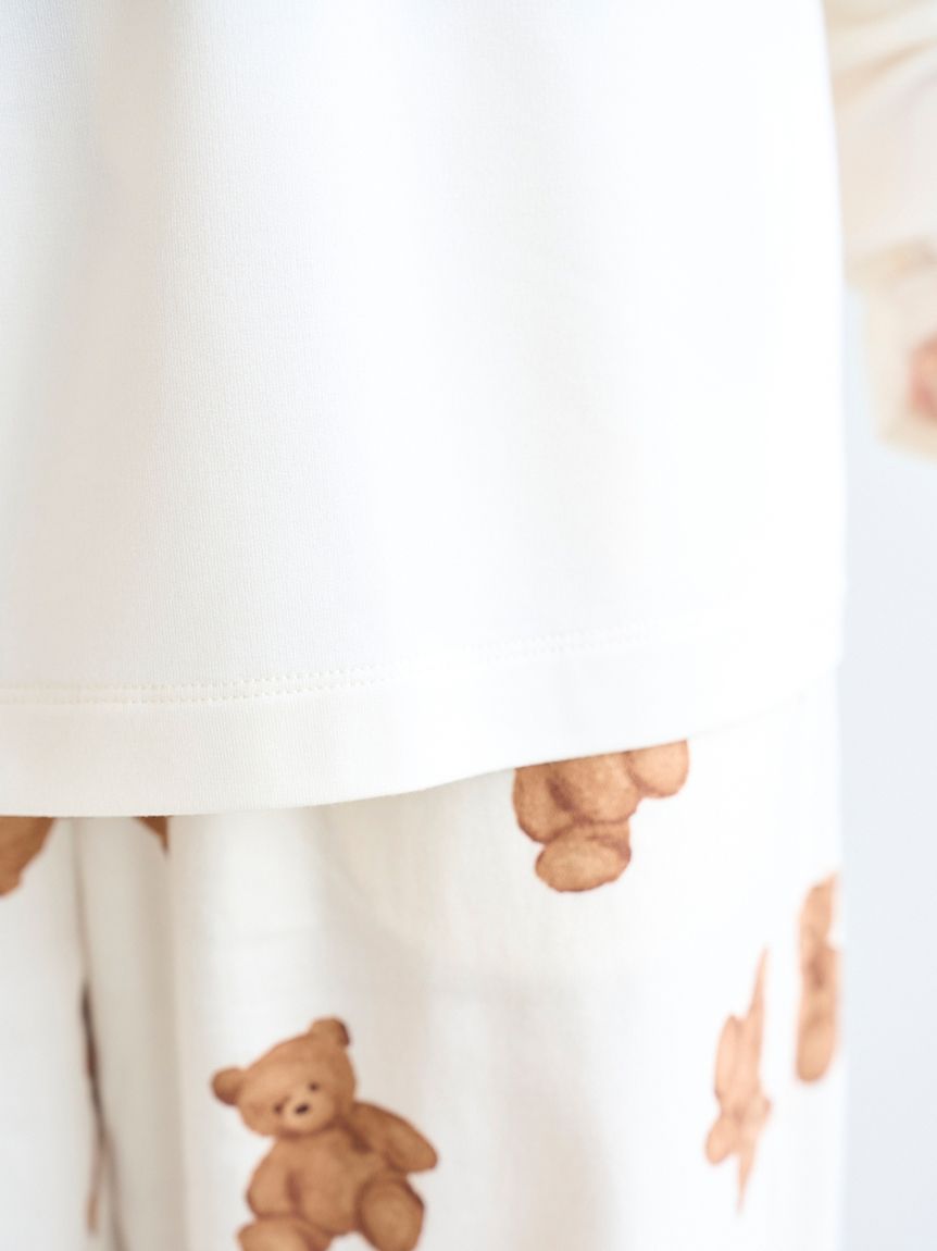 This bear-themed loungewear series is perfect for a cozy holiday seasons spent with family, friends, and loved ones. This long-sleeved T-shirt features a large cute bear print and the Gelato Pique Holiday logo. Crafted with soft, comfortable inlay material, it can also be worn as an inner layer under a jacket. Pair it with other bear pyjamas from the same collection or create a coordinating look with men's size.