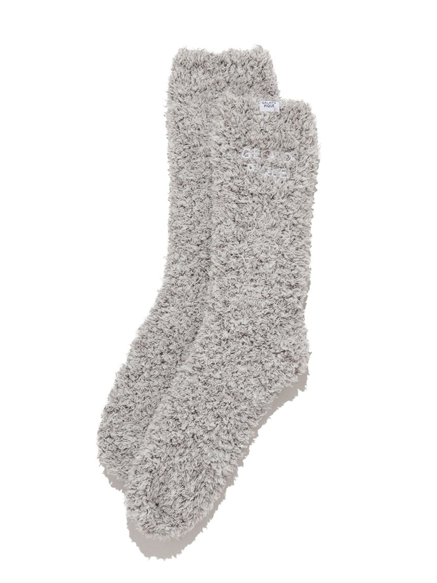 These homme-sized room socks feature the classic 'gelato' fabric in a melange finish. The fluffy feel of gelato is perfect for chilly winter. The logo is embroidered at the opening. Available in two colors: pale pink and gray. Pair with your favorite loungewear or share the warmth as a winter gift.