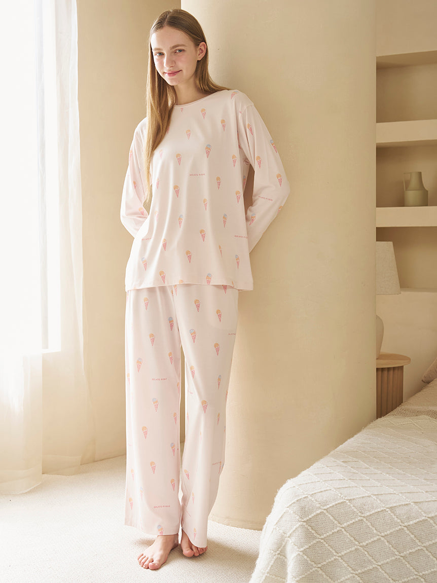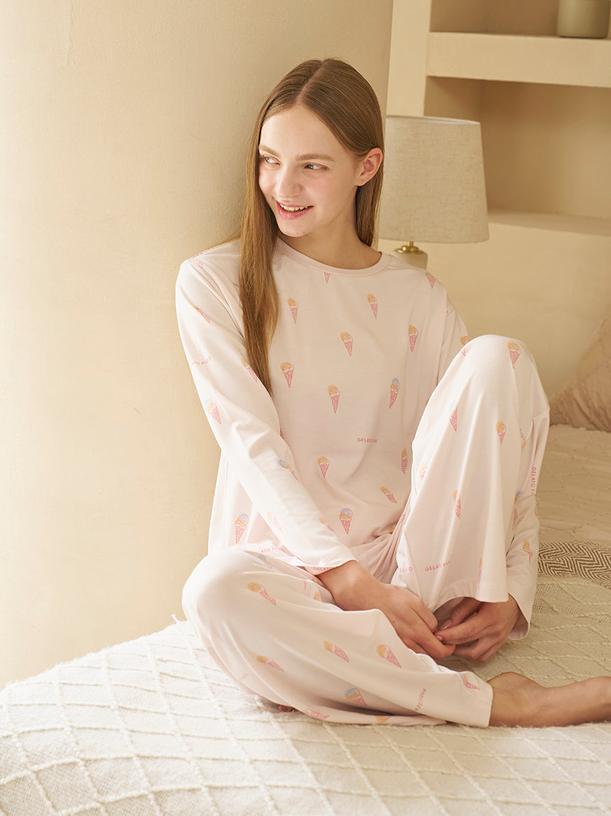 A Cute long pants featuring either ice-cream (pink) or cute polar bear (gray) printed all over the item. We recommend pairing it with the matching T-shirt from the same collection.