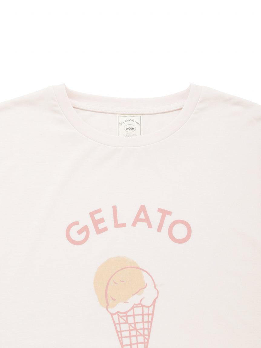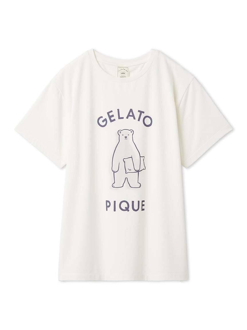 A Cute short-sleeved T-shirt featuring either ice-cream (pink) or cute polar bear (gray) printed all over the item. We recommend pairing it with the matching pants from the same collection.