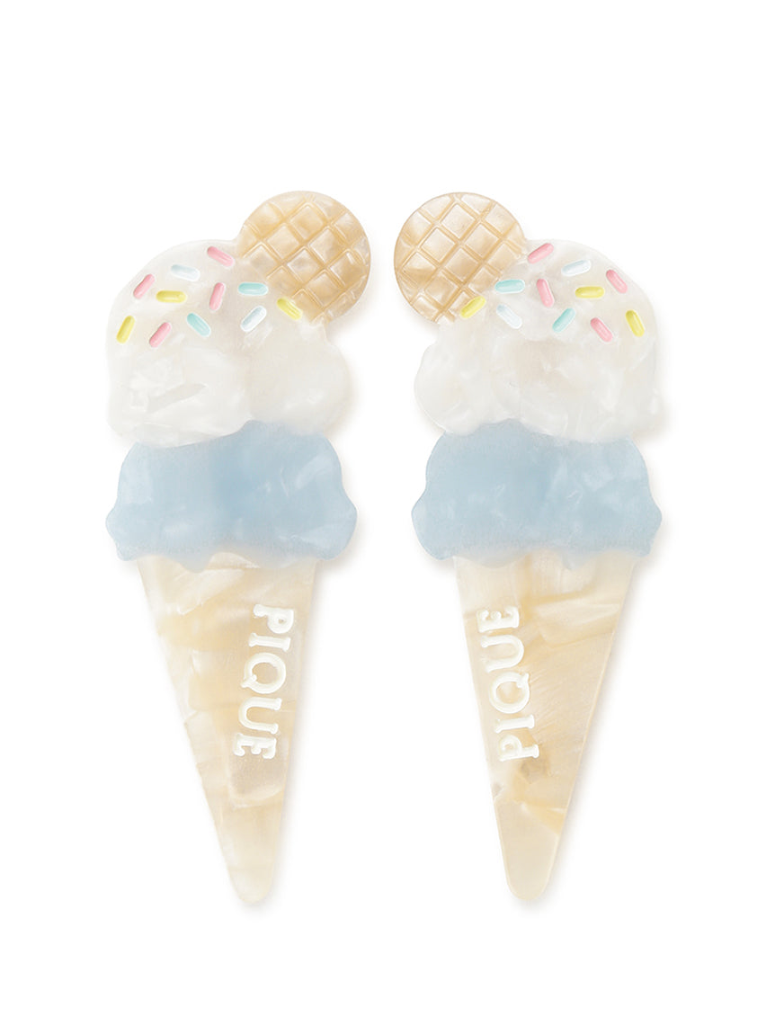 A set of mini hair clips featuring ice cream cone designs. Made with multiple colors of resin, these mini clips are super shiny and cute, perfect for adding joy to your hair style. This item is available in three variants: cream, pink, and mint ,all with different design details. A larger hair clip is also available in the same collection.