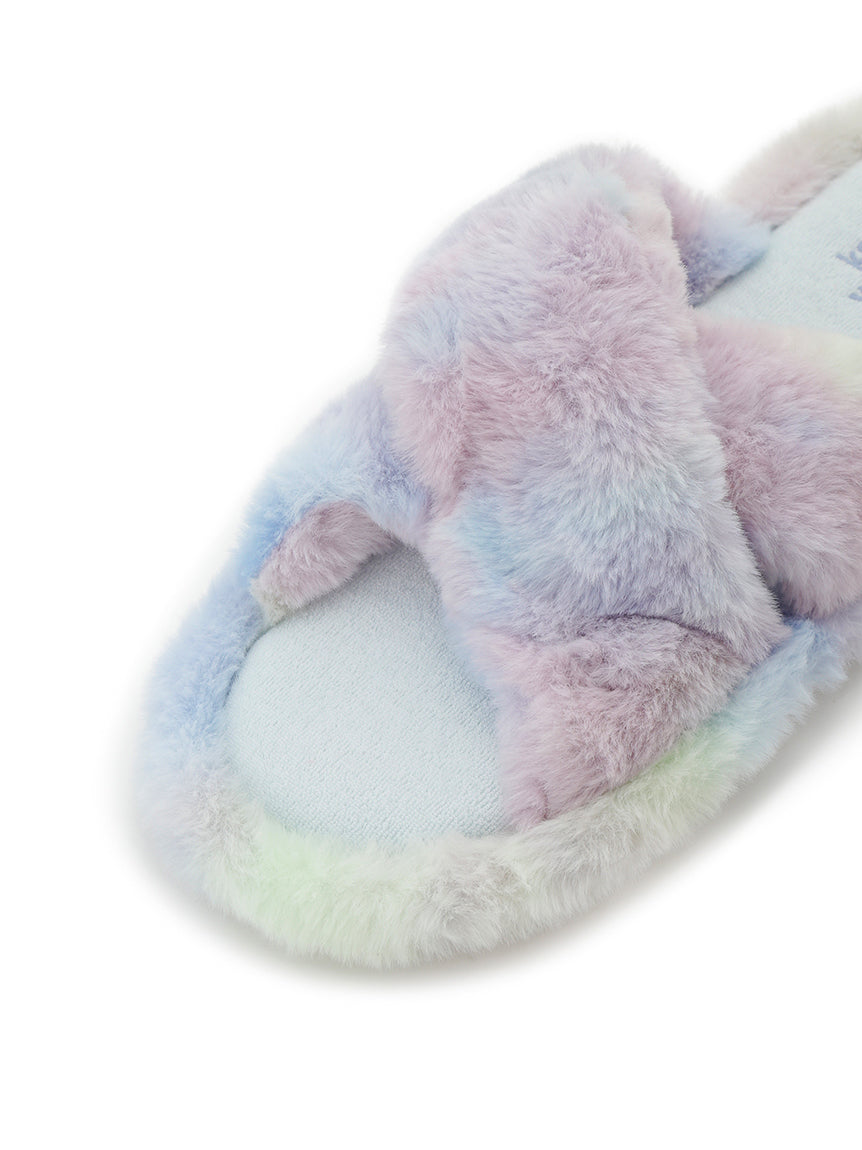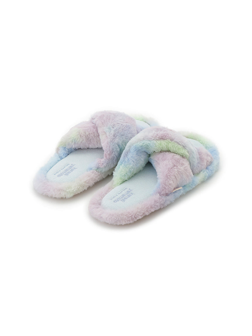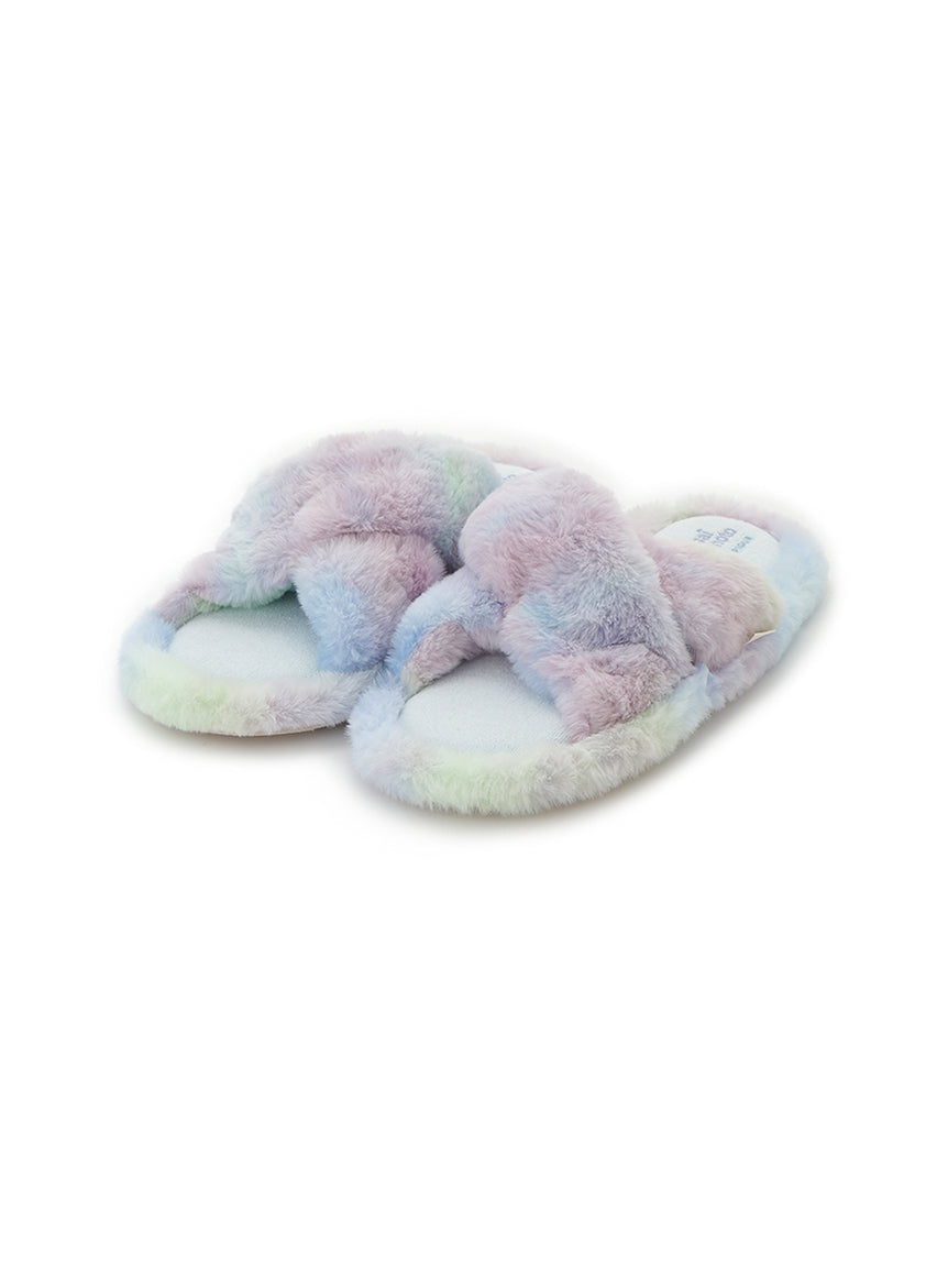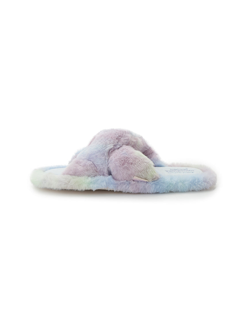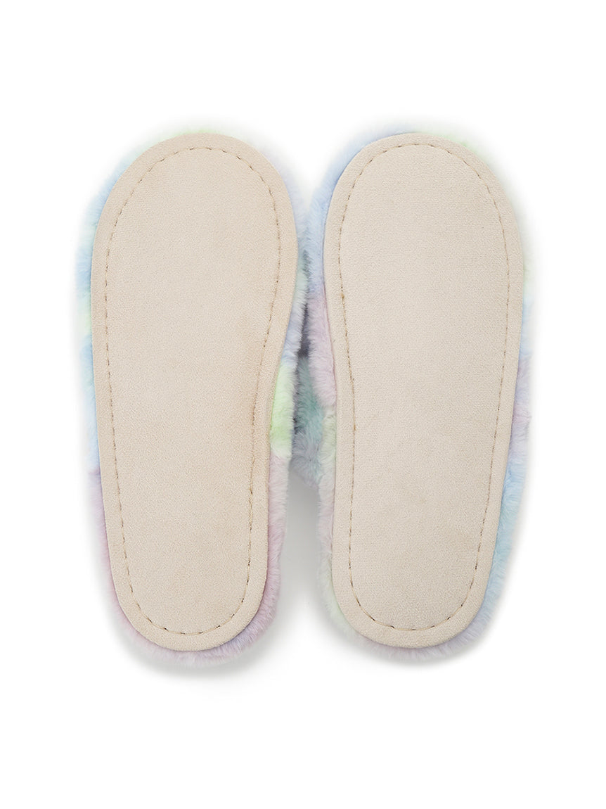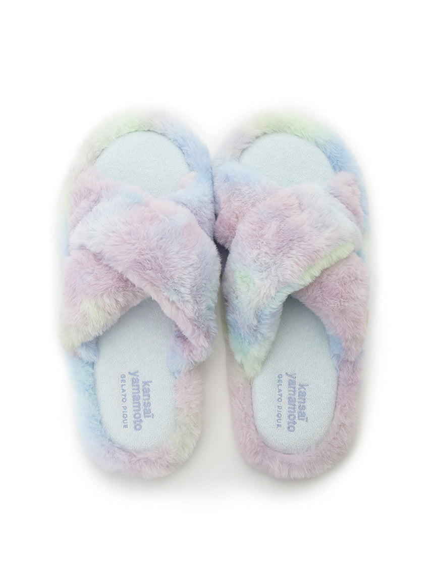 Motifs of flowers and butterflies, inspired by traditional Japanese sweets, are rendered in tie-dye patterns, finished with original colors that celebrate gelato pique's signature hues and beauty of colors. The open-toe design is adorned with voluminous, plush fur. The heel features embroidered logo detailing. Pair them with matching apparel from the same collection or send this item to your loved ones.