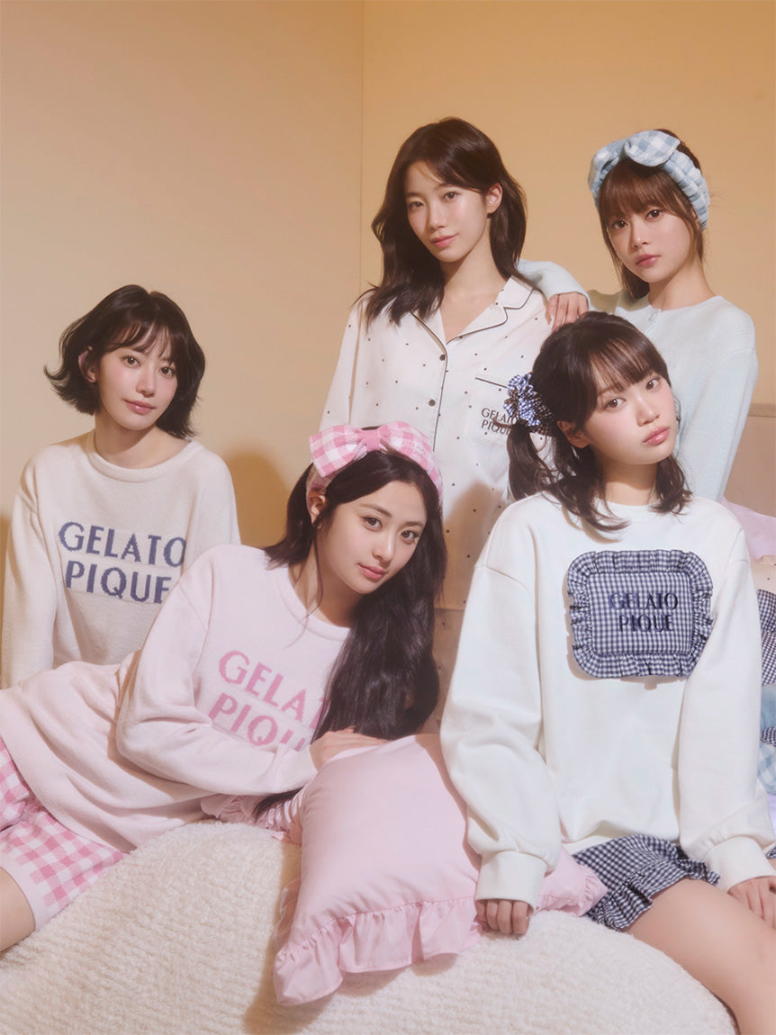 This seasonal gingham check set features a casual, girly feel, crafted from a knit that combines the softness of Airy Moco with the smoothness of Smoothie. The pullover features a large logo jacquard on the front and a relaxed fit. The shorts feature a logo accent on the left hip and a pocket on the back right, creating a streamlined silhouette. Available in three colors: muted navy, soft blue, and pink, this set item would also make a perfect spring gift for your special ones.