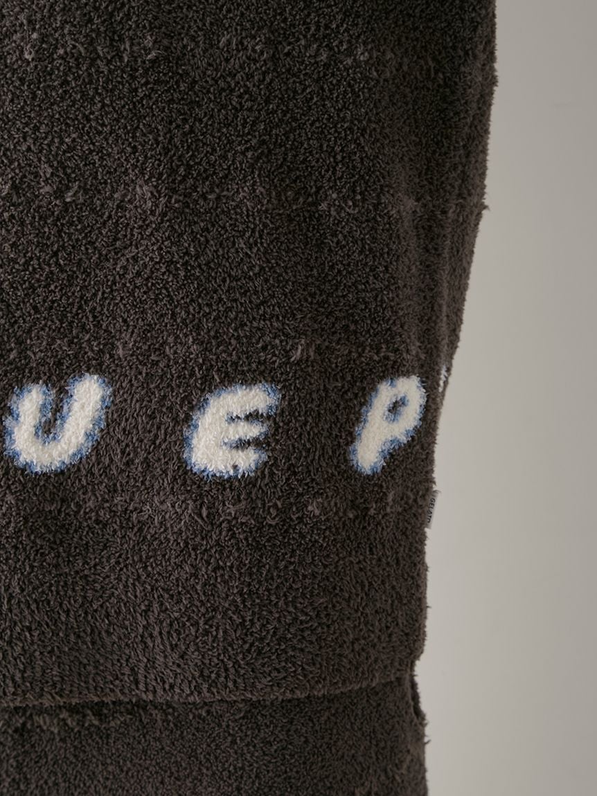 This fall Halloween collection, a once-a-year treat, is brought to you in HOMME's signature colors. This warm pullover is made from soft 'Baby Moco' fabric and features a logo jacquard at the hem for a pop of color. Part of the border is crafted with long-haired 'Gelato' yarn for a textured finish. Available in two colors: camel, inspired by toasted biscuits stuffed with pumpkin mousse, and dark gray, inspired by Halloween night, with a candy-like logo at the hem. Pair it with the long pants and slippers from the same series.