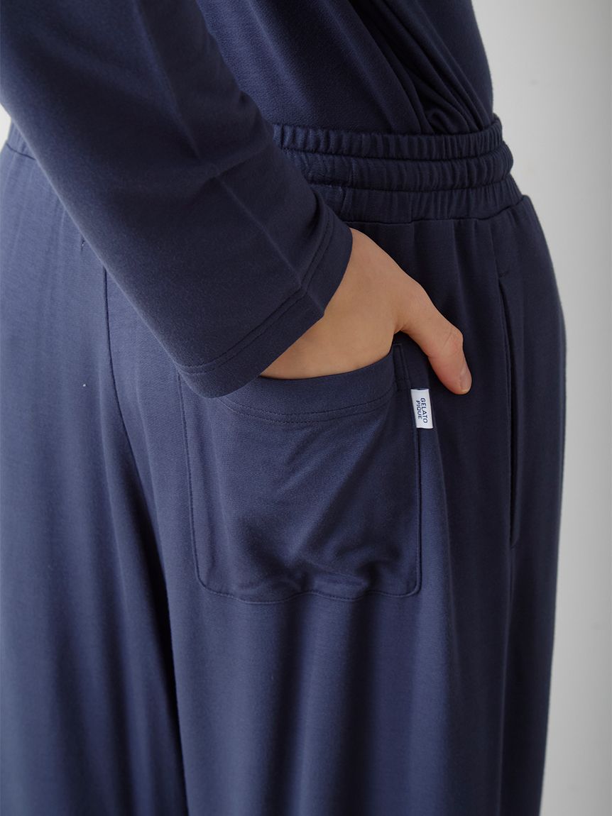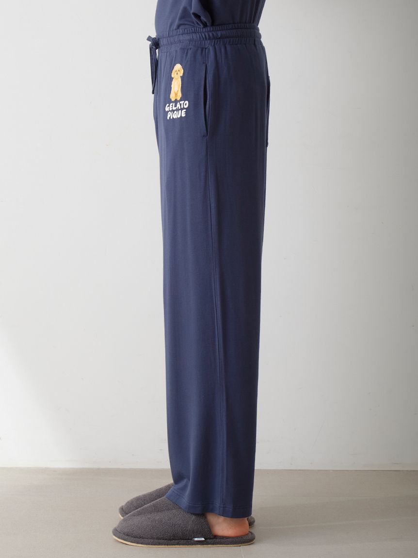 This HOMME cut and sew series is themed around relaxing on a snowy holiday with your beloved dog. These loose-fitting long pants are made with moisture-wicking, heat-generating HOT FABRIC for a cozy feel. The adorable front-facing dog print on the left hip adds an irresistible charm. Pockets are included on both sides and the back right. Available in two colors: French Bulldog mocha and toy poodle navy, pair it with the matching design pullover from the same collection.