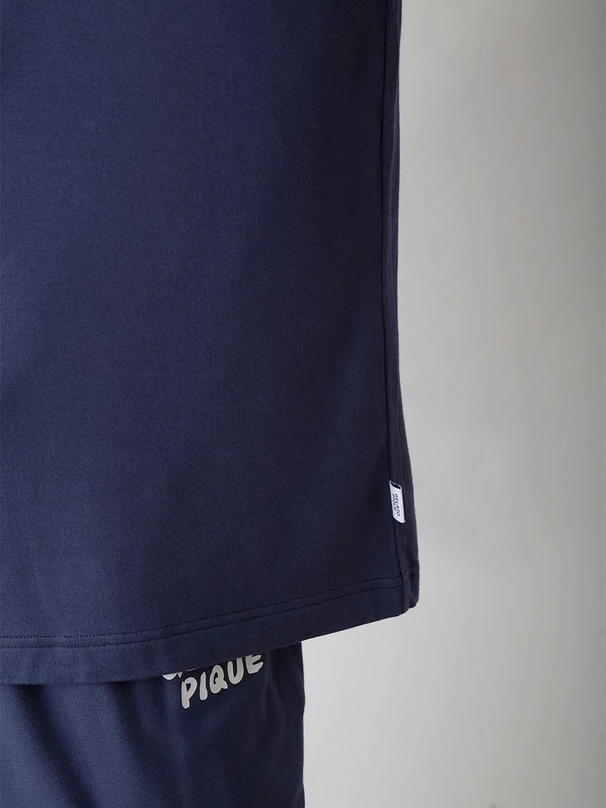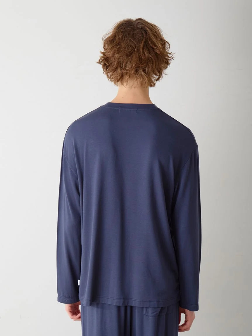 This HOMME cut-and-sew series is themed around relaxing on a snowy holiday with your beloved dog. This printed long-sleeved T-shirt is made with moisture-wicking, heat-generating HOT FABRIC for a cozy, warm feel. The dog's expression is irresistibly cute. Available in two colors: ivory with a French bulldog print and navy with a toy poodle print, a pair of matching pants is available from the same collection.