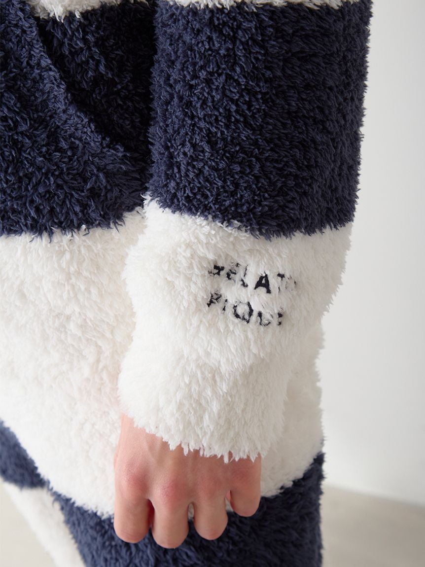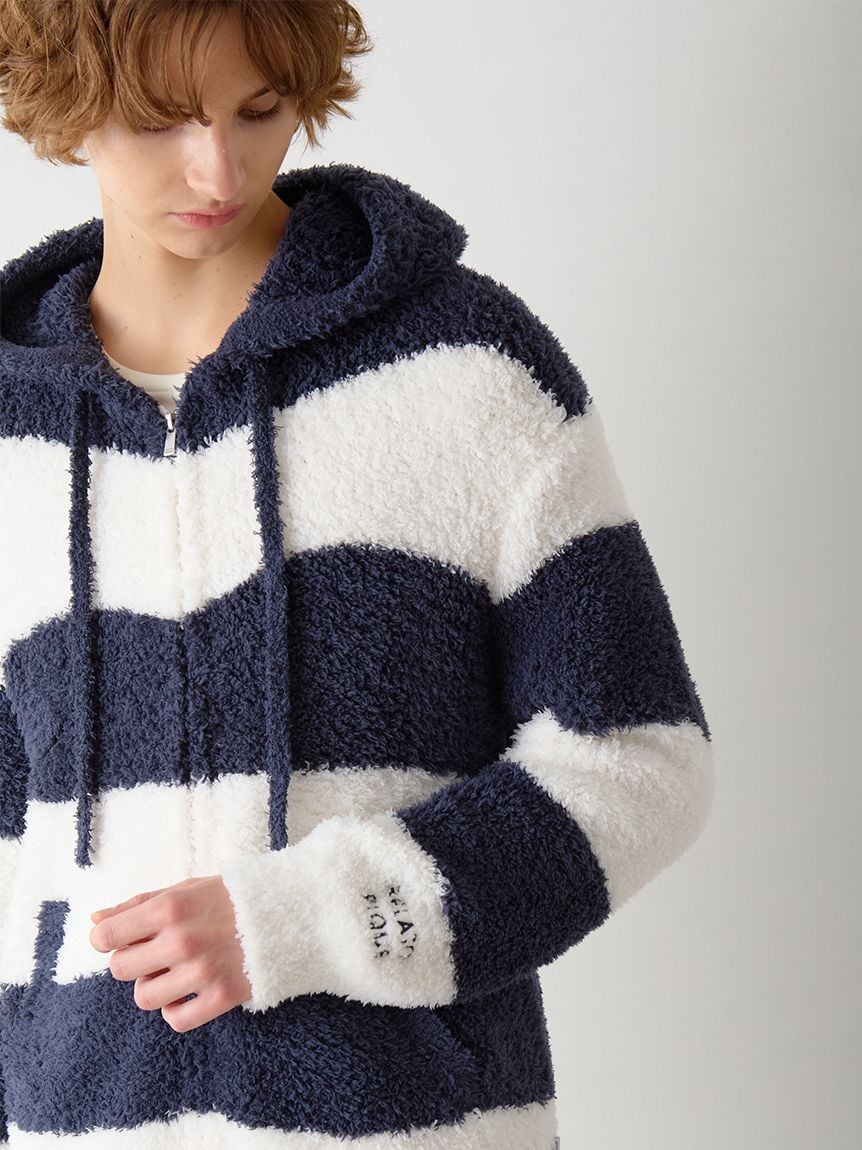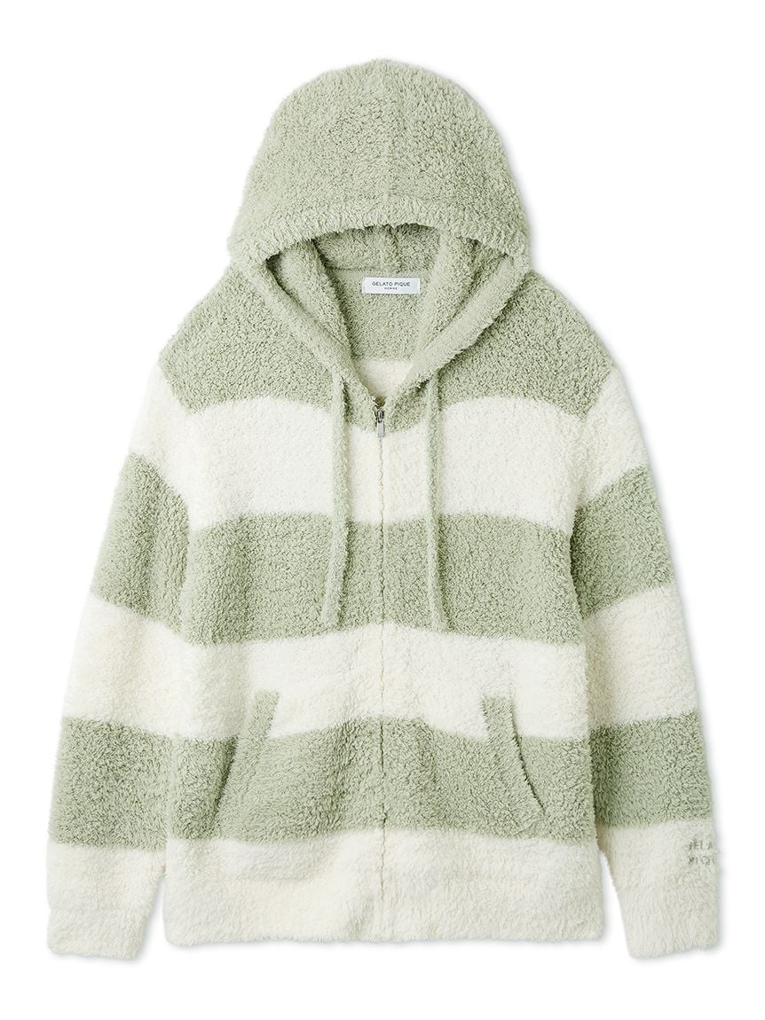 This Men's series features the iconic two-tone striped pattern, crafted from the classic fluffy material "Gelato." This zip-up hoodie features a loose silhouette and is easy to layer, featuring a large GELATO PIQUE logo jacquard on the back. The left cuff also features a logo embroidery. Enjoy pairing it with the long pants and accessories from the same collection.