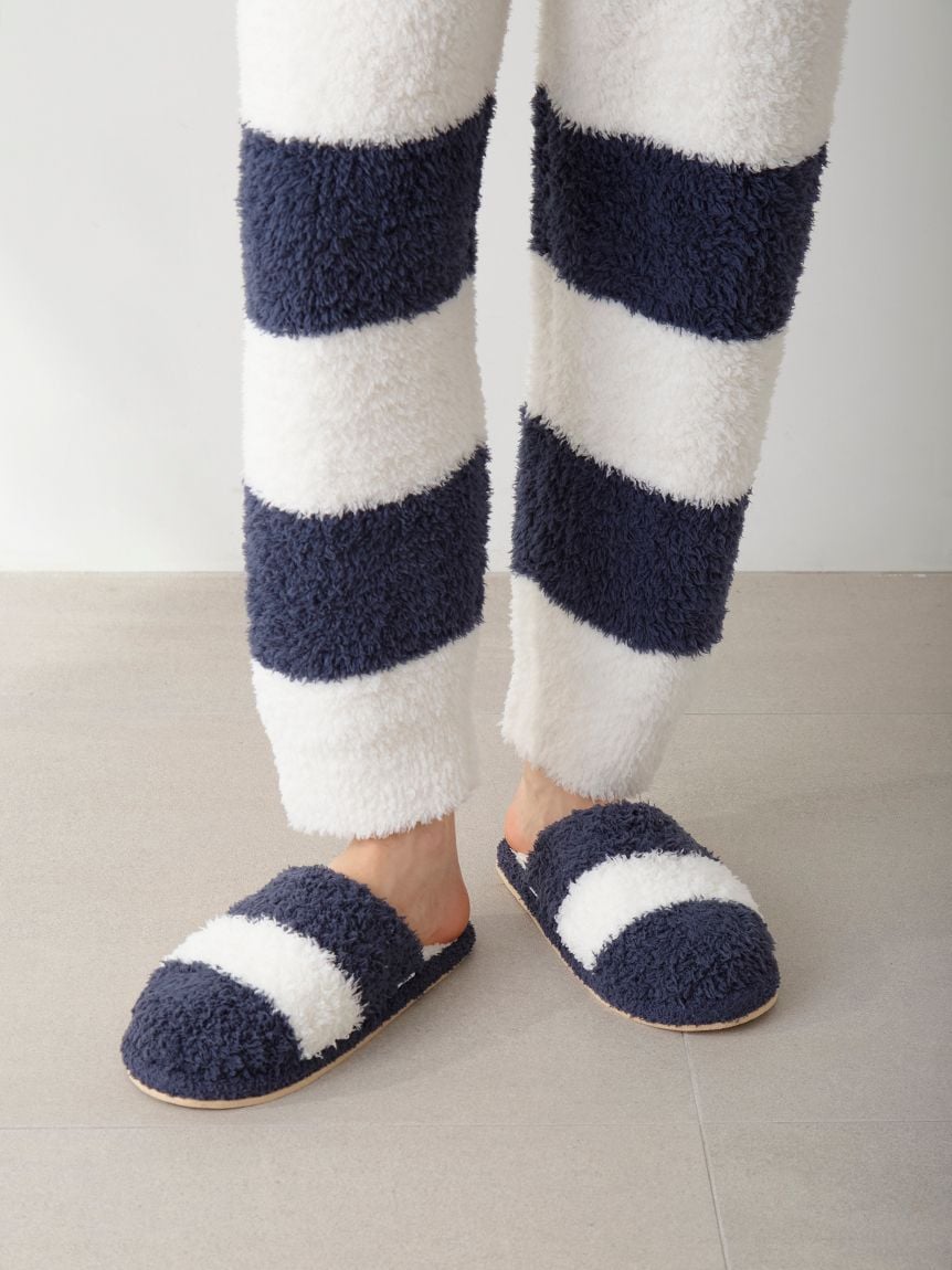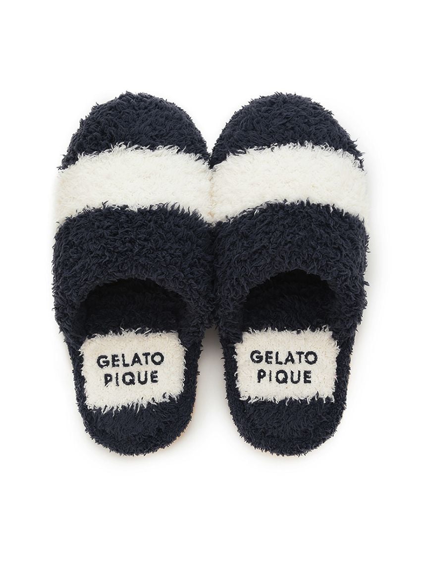 This iconic two-tone striped room shoe from the HOMME series is crafted from the classic fluffy material "Gelato." These room shoes have a voluminous, rounded silhouette. They also feature a logo embroidered on the heel. Available in mint and navy. Pair them with other room wears and accessories from the same series, or gift this item to family or friends.