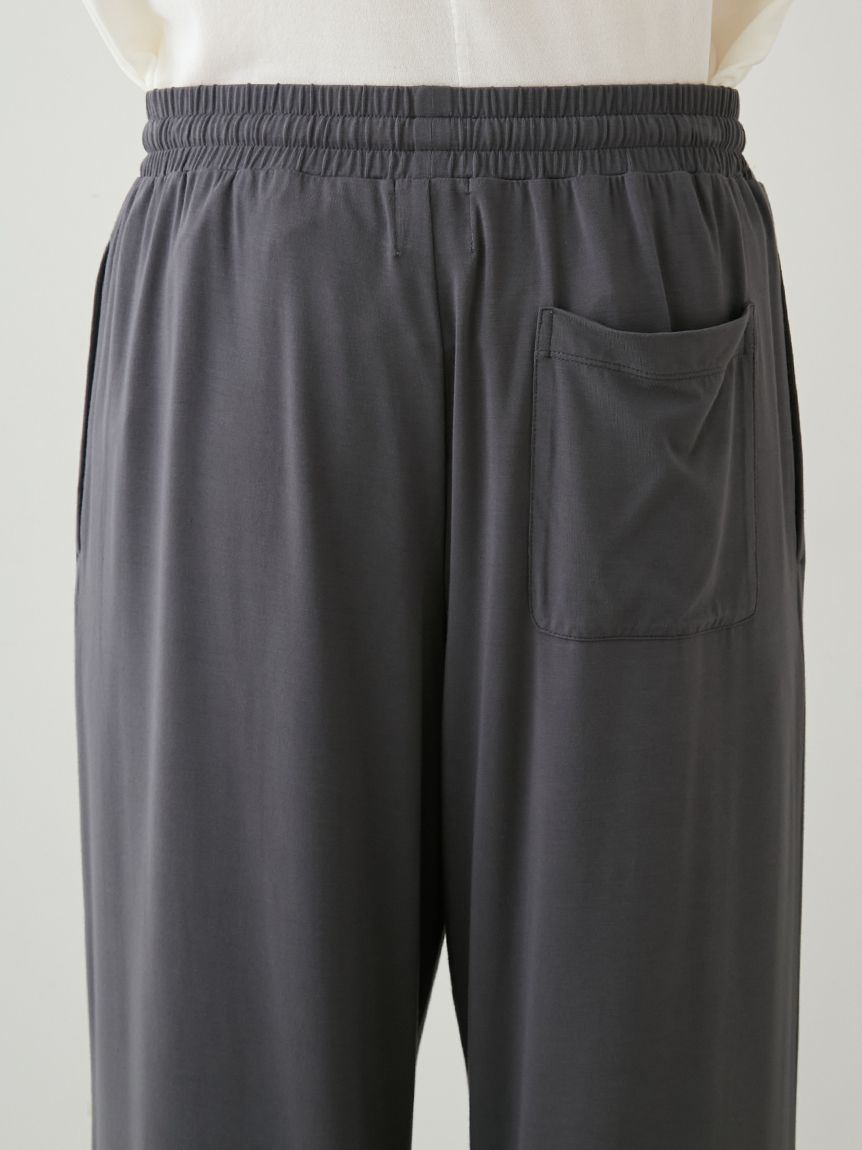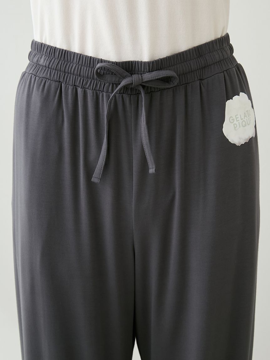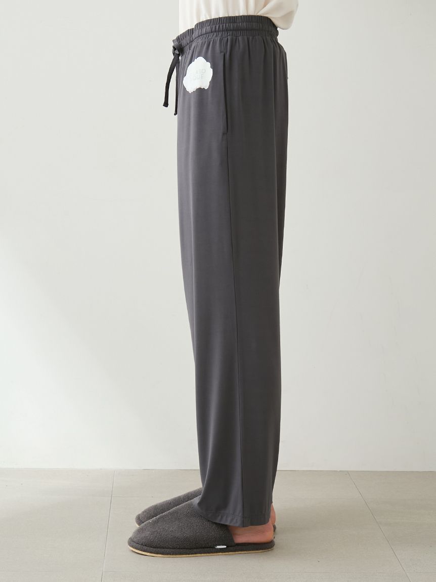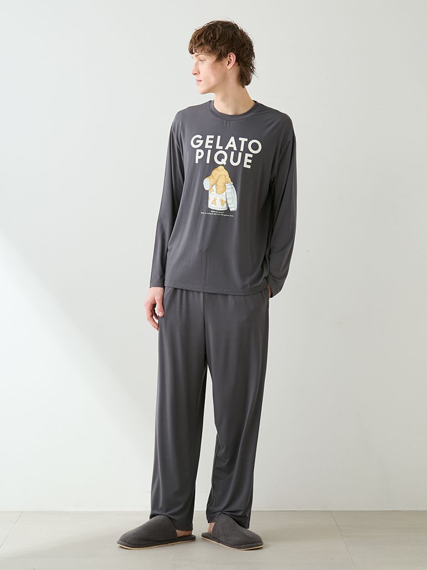 This series features HOMME bear and gelato graphics on a comfortable, smooth rayon top. These long pants feature a soft, flowing, straight silhouette and a fluffy gelato print on the left hip. This item matches the long-sleeved T-shirt featuring a bear jumping into a gelato box, as the design around the waist is inspired by the spilled gelato. Pockets are placed on both front sides and the back right. Available in cream and dark gray, this item along with the t-shirt would make a great loungewear set for yourself or as a gift.