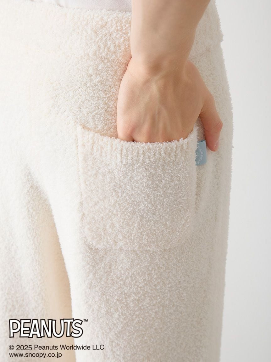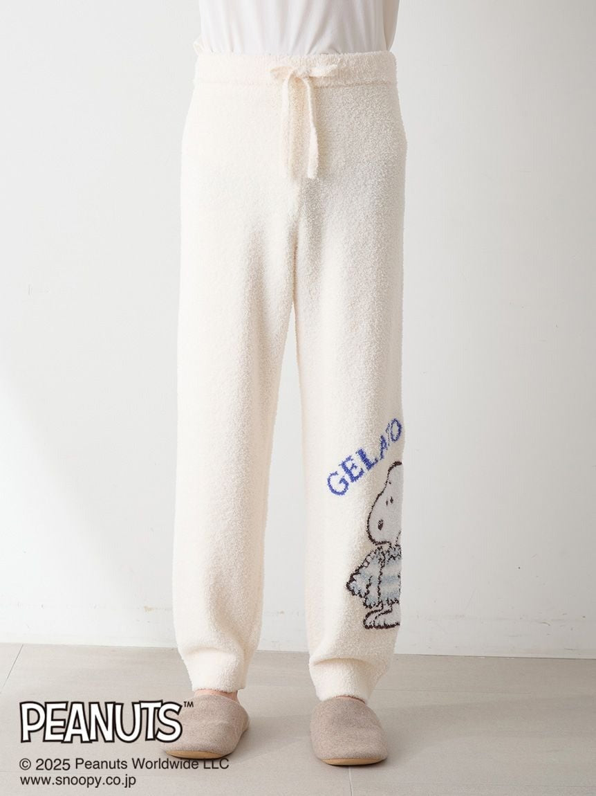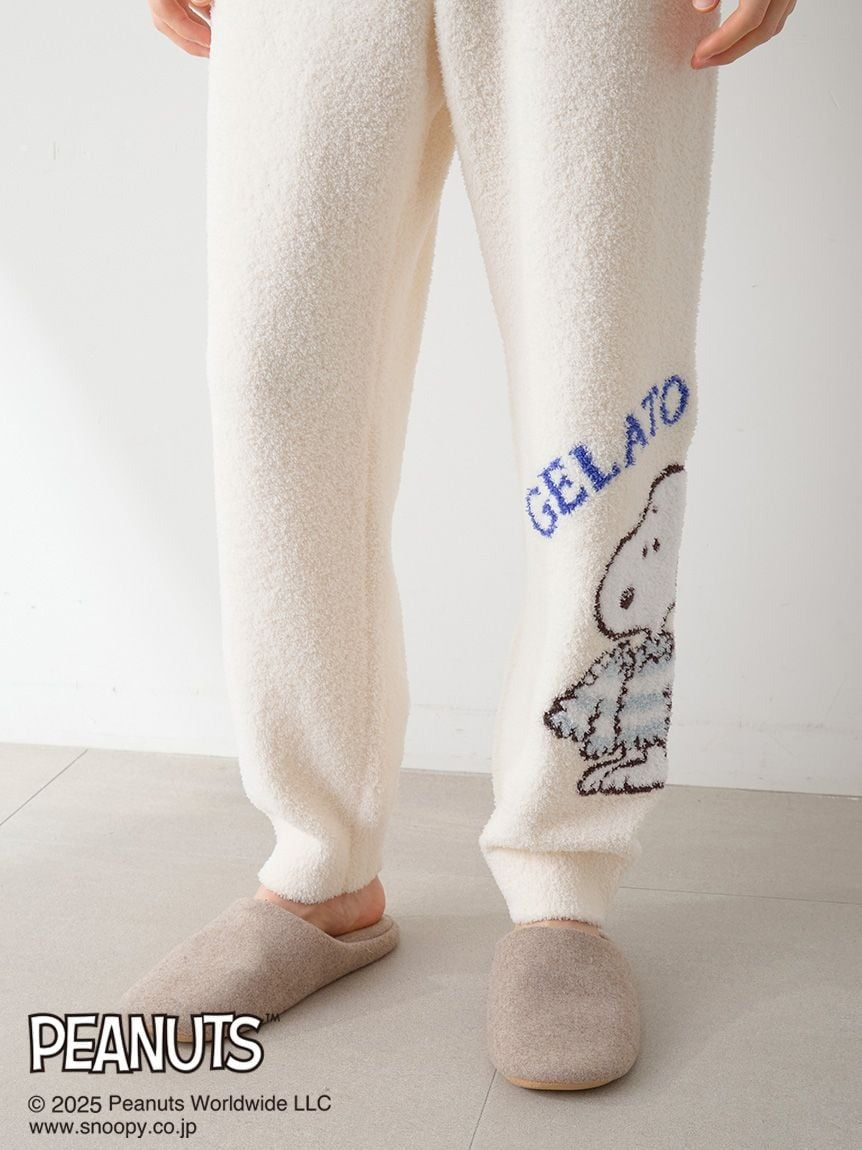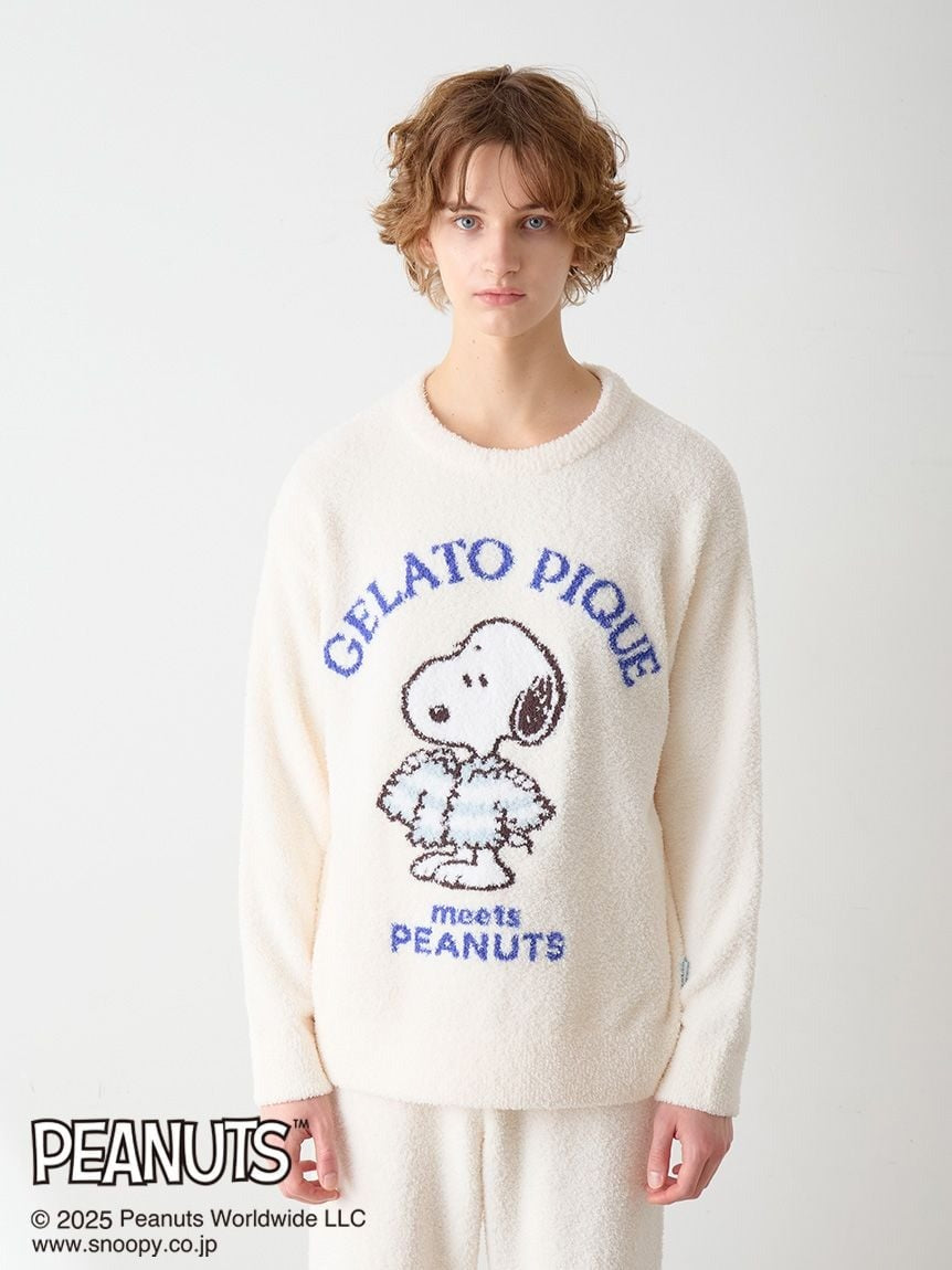 [Men's size pullover and pants set featuring original PEANUTS artwork exclusive to Gelato Pique, depicting cute moments before bedtime in a pop style]