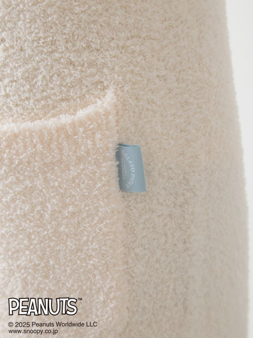 The new items from the PEANUTS and gelato pique collaboration series are perfect for the whole family. This collection features a special, original art exclusive to Gelato Pique, depicting PEANUTS characters enjoying a happy moment before bed. Crafted from fluffy 'Baby Moco' fabric, this set-item combines a relaxed-fitting pullover with long pants that are slightly tapered at the hem for ease of movement. Available in two colors and patterns: off-white featuring Snoopy choosing loungewear, and charcoal gray featuring Charlie Brown eating ice-cream. This item is recommended for coordinating with your loved one with ladies items, or as a cute surprise gift.