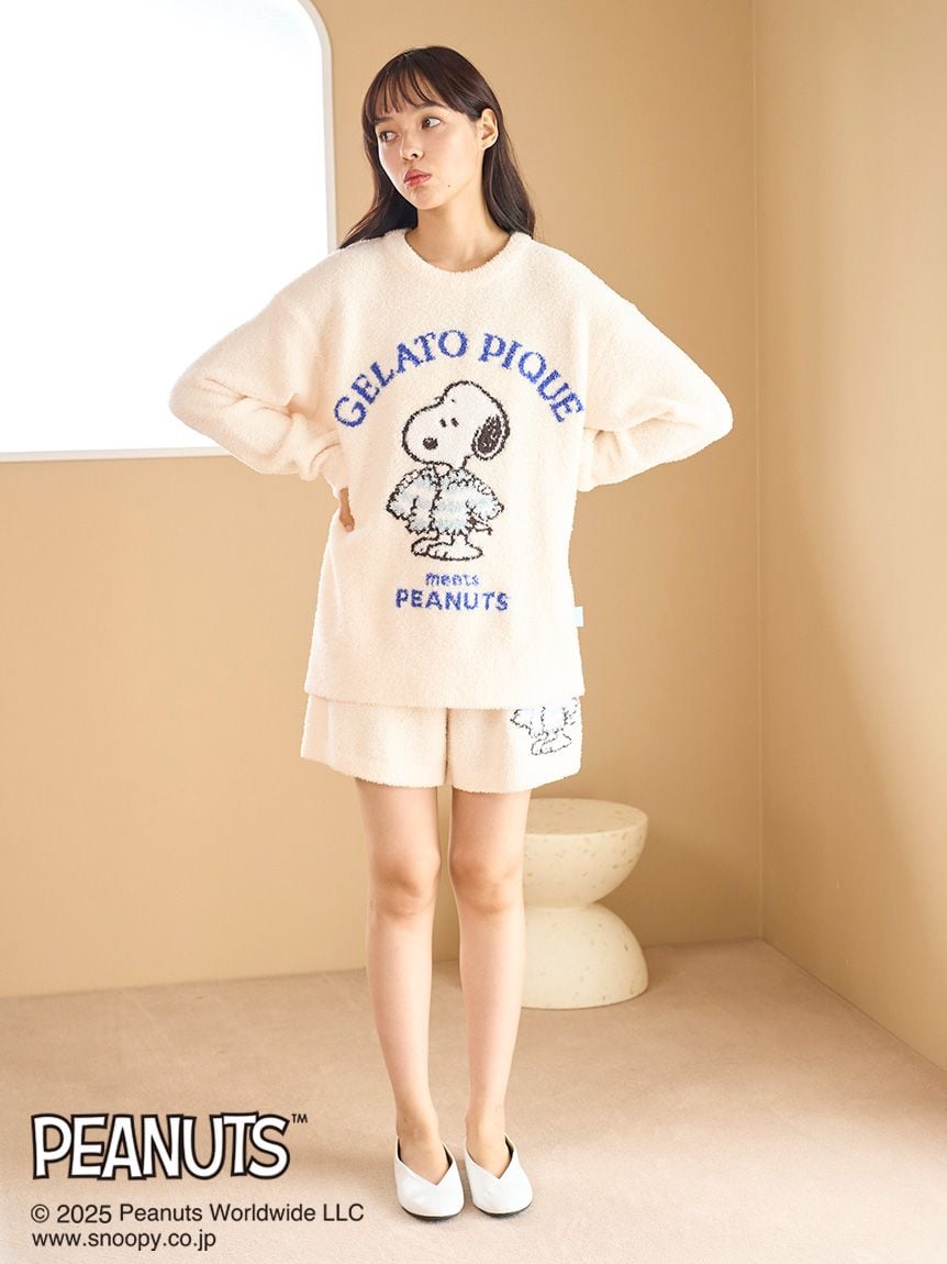 The new items from the PEANUTS and gelato pique collaboration series are perfect for the whole family. This collection features a special, original art exclusive to Gelato Pique, depicting PEANUTS characters enjoying a happy moment before bed. Made from fluffy 'Baby Moco' material, the collaboration-exclusive artwork is emphasized being featured on a large area. This cute piece can be worn until spring if paired well with socks or slippers. This item comes in three colors and patterns: off-white featuring Snoopy choosing loungewear, pink featuring Sally Brown wearing Gelato Pique's classic striped hoodie, and blue featuring Snoopy yawning while holding a pillow. Pair them with the pullover from the same collaboration series or keep yourself extra warm with the unisex hoodie made of gelato fabric. Men's size items are also available (long pants only), so you can share coordinated looks with him.