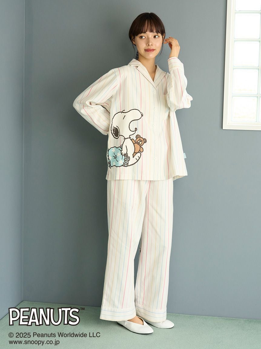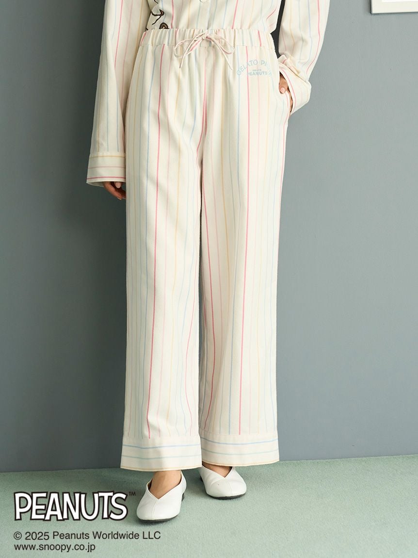 [Striped flannel pants featuring a large, PEANUTS-Gelato Pique Collaboration exclusive artwork of Snoopy]