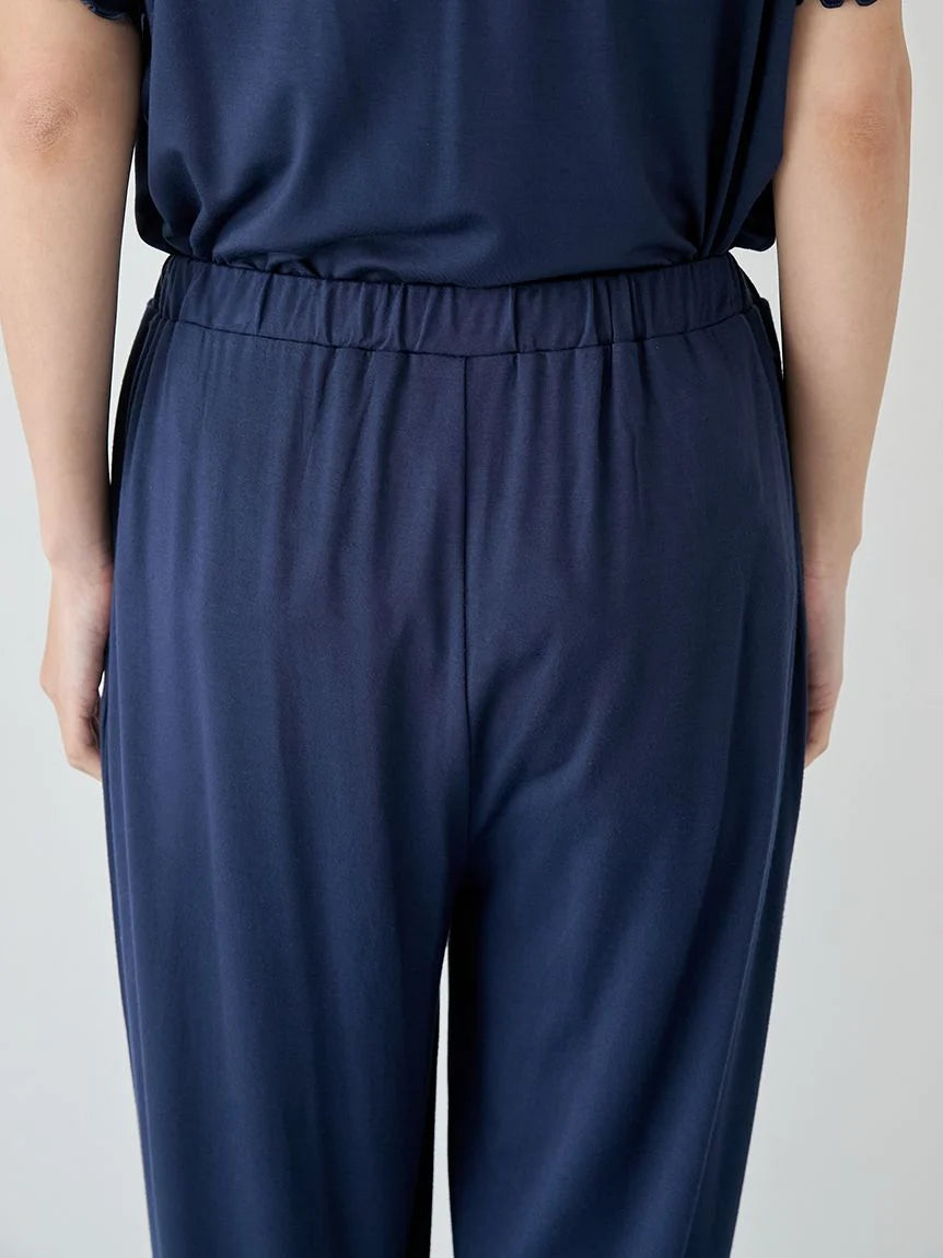 This soft rayon logo series features mellow details for a refined and cute look. These long pants have a cool, comfortable feel and a logo graphic printed as a single point on the left hip. The mellow hem adds a touch of femininity, while the wide silhouette provides a comfortable fit without feeling restrictive. There are pockets on both sides. Available in basic heather gray, dark pink, and navy, it would also make a great gift when paired with a T-shirt from the same series.