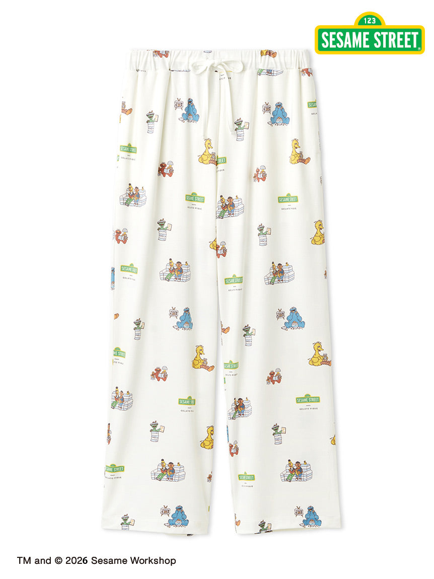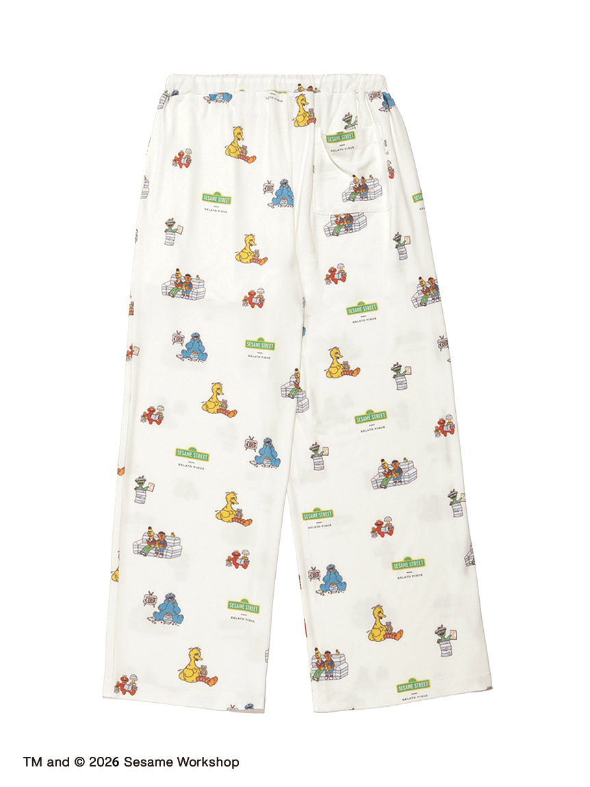 [Long Pants Featuring All-Over Print of Sesame Street Characters with Pique Blue]
