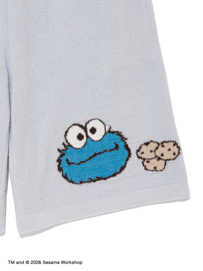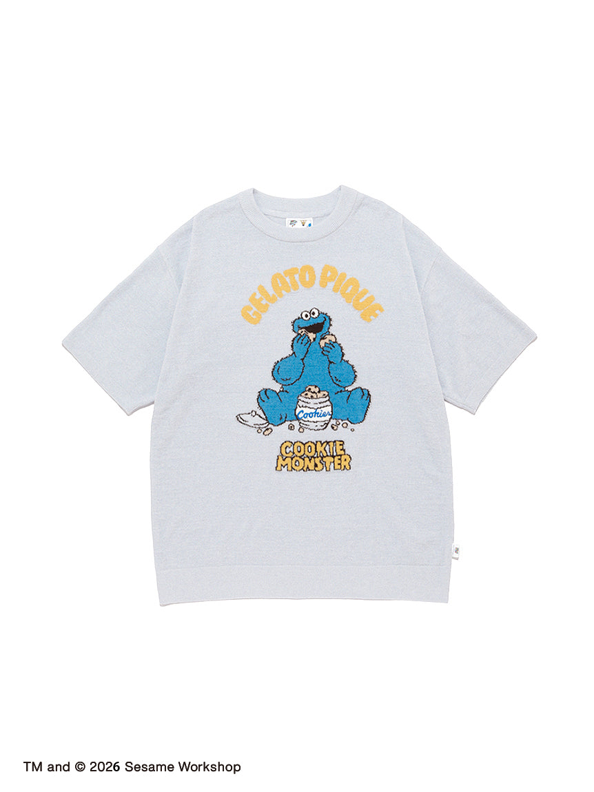 This men's size set features a jacquard-infused short-sleeved pullover and shorts made from lightweight 'Airy Moco' fabric. The body colors are in line with the character's image, creating a catchy design that stands out even when worn alone. The character design on the front of the pullover is complemented by fluffy items in a pique blue striped pattern. The shorts feature logo jacquards featuring the character's face and name on each hem, creating an asymmetrical look. Available in two colors: blue with a Cookie Monster pattern and gray with an Oscar pattern.
