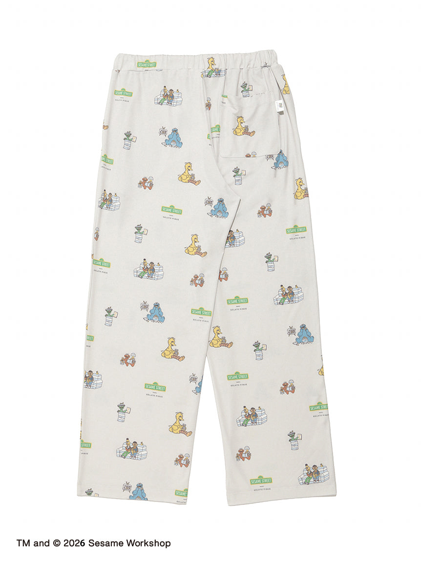 [SESAME STREET - Men's All-Over Print Long Pants Featuring Popular Characters in Pique Blue]