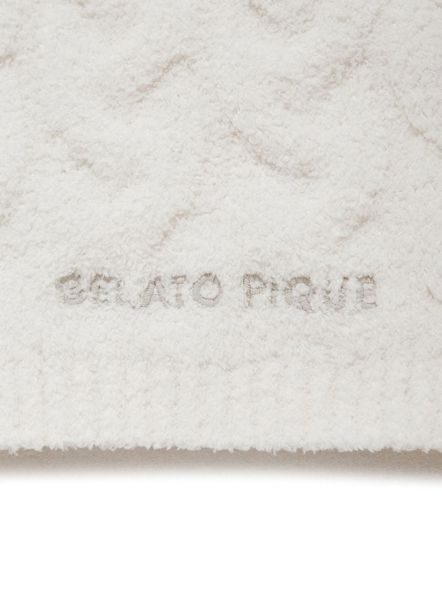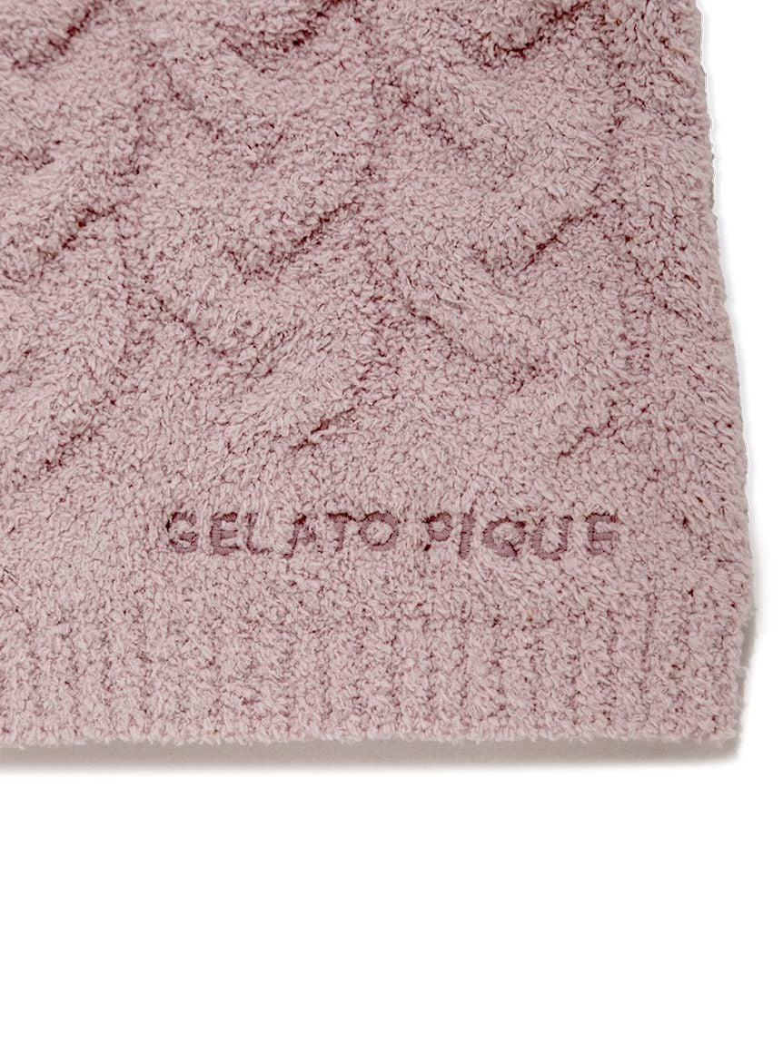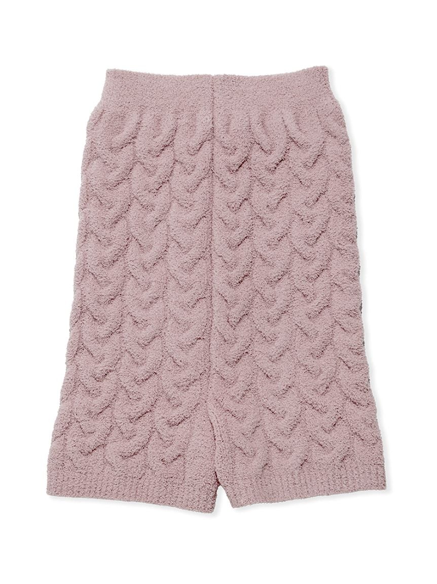 These seasonal cable knit waist warmer pants are crafted from soft, fluffy, medium-weight yarn. Their warmth and comfortable fit make them perfect for keeping your waist and stomach warm. The embroidered logo on the left hem adds a subtle accent. Available in natural off-white and warm pink. We recommend pairing them with the long socks from the same series.