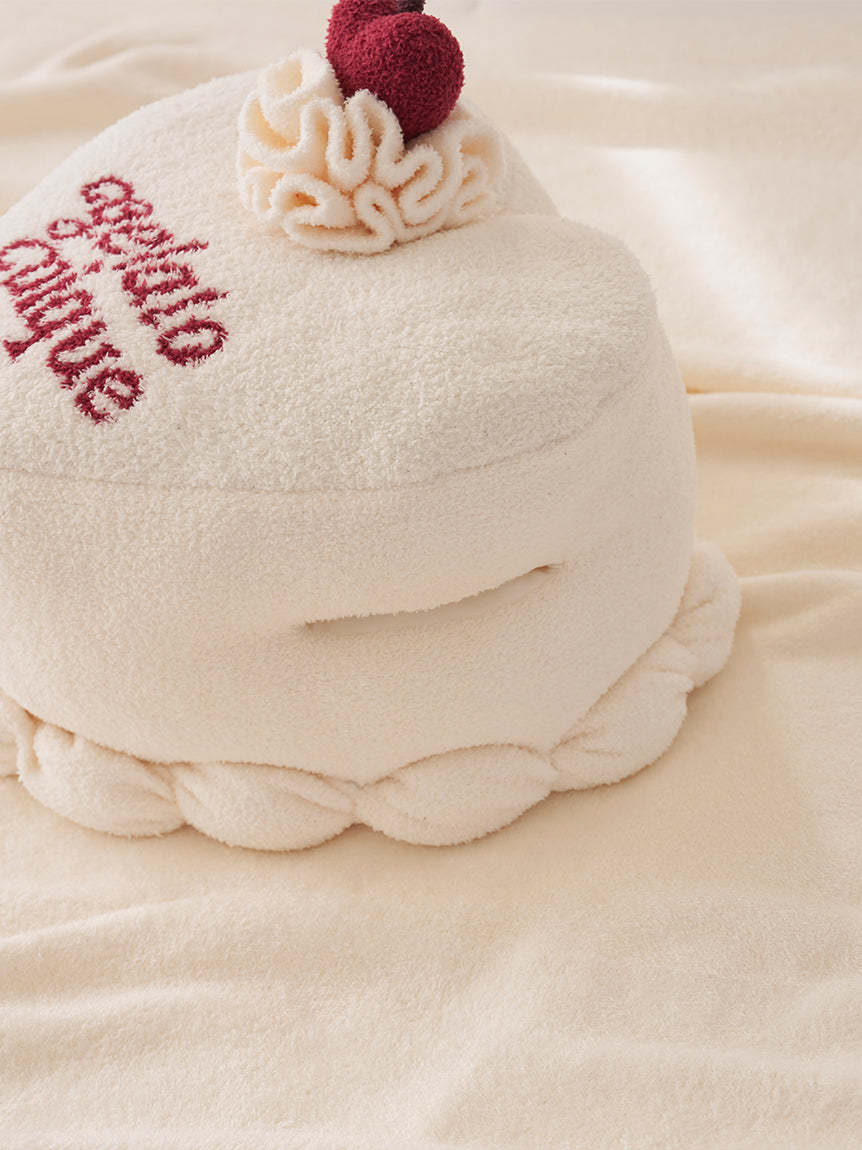 Designed with the concept of “making your heart flutter", this heart-shaped cake cushion is made of super light airy moco fabric. With hand pockets on both side, this item would be perfect for a quick nap on sofa or on your lap when sitting.