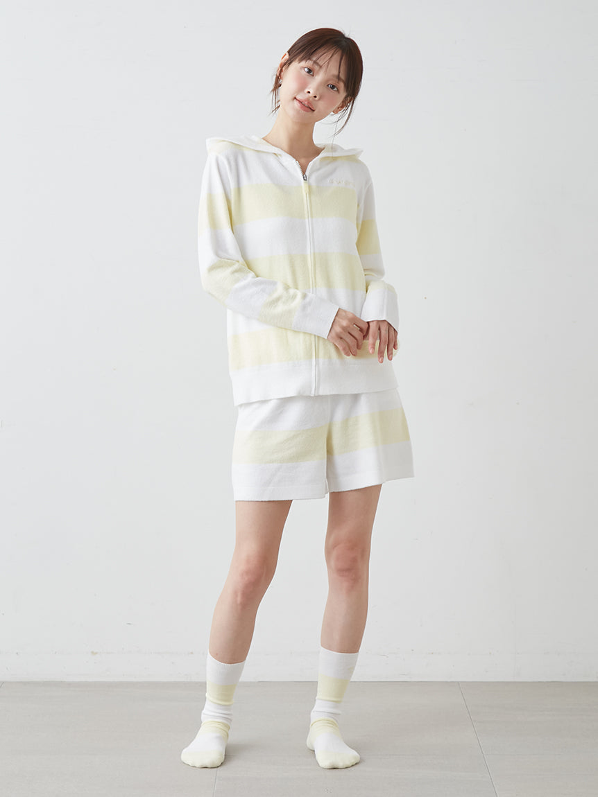 This Smoothie Lite Striped Hoodie uses fresh-looking summer colors, finished with logo embroidery, to give you a cool wearing experience in the upcoming hotter season. Available in lemon yellow, strawberry pink, and blueberry blue, enjoy wearing this item with the matching bottoms from the same collection.