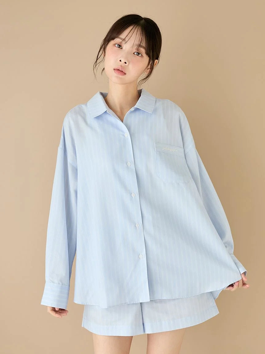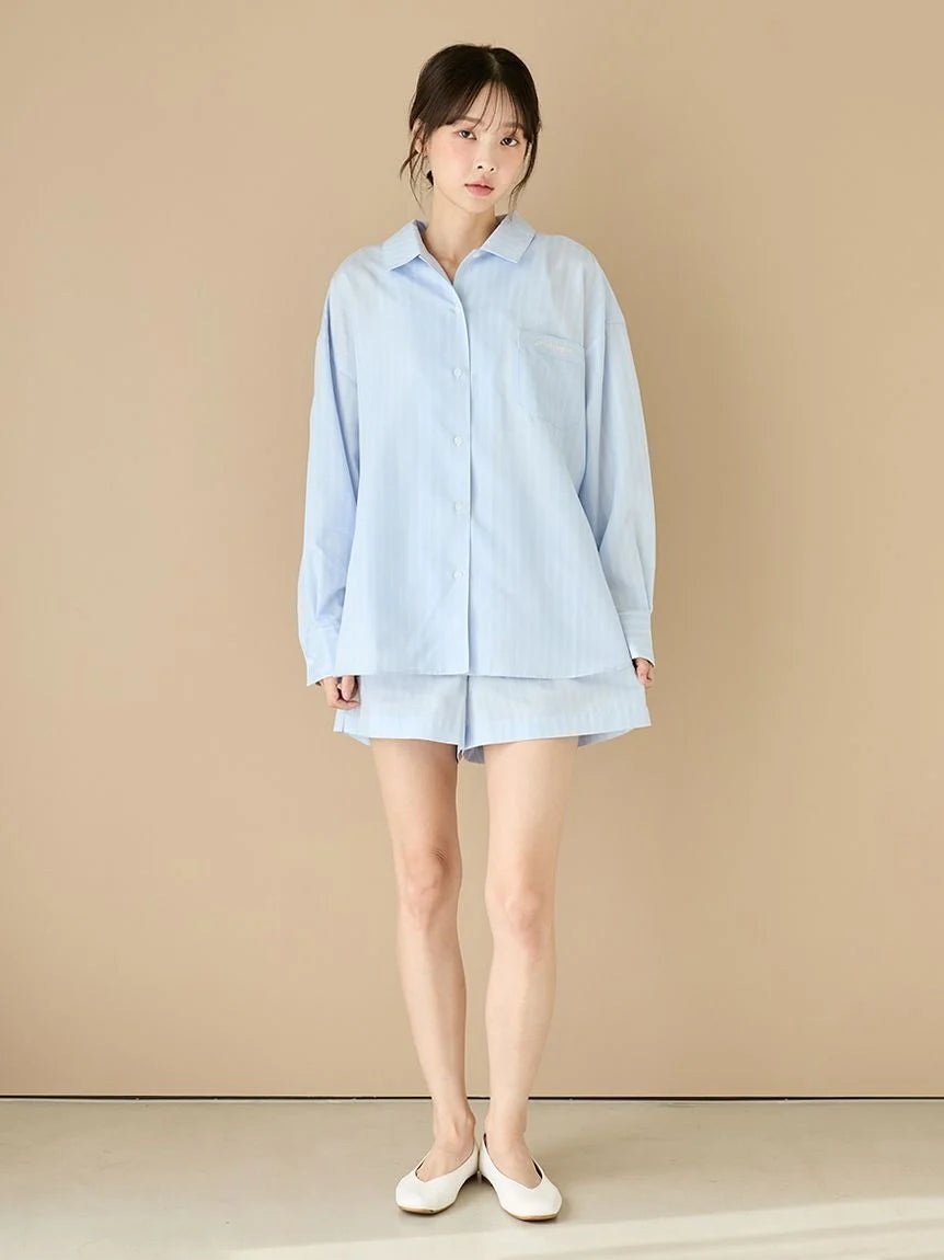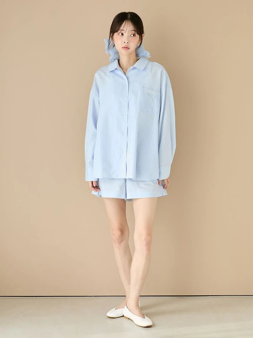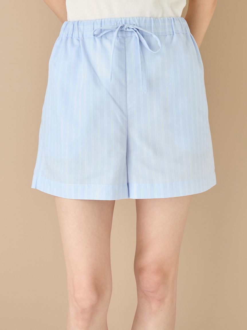 This woven fabric series features basic fine-pitch stripes that are easy to coordinate with everyday loungewear. These shorts have a basic silhouette and are perfect for comfortable wear from now until early spring. They feature pockets on both sides and an embroidered logo on the back right pocket. They also feature a soft, smooth feel. Available in two colors: a mature, subdued ivory and a refreshing spring blue. We recommend pairing them with the shirts from the same series or with the Aran knit series being released at the same time.