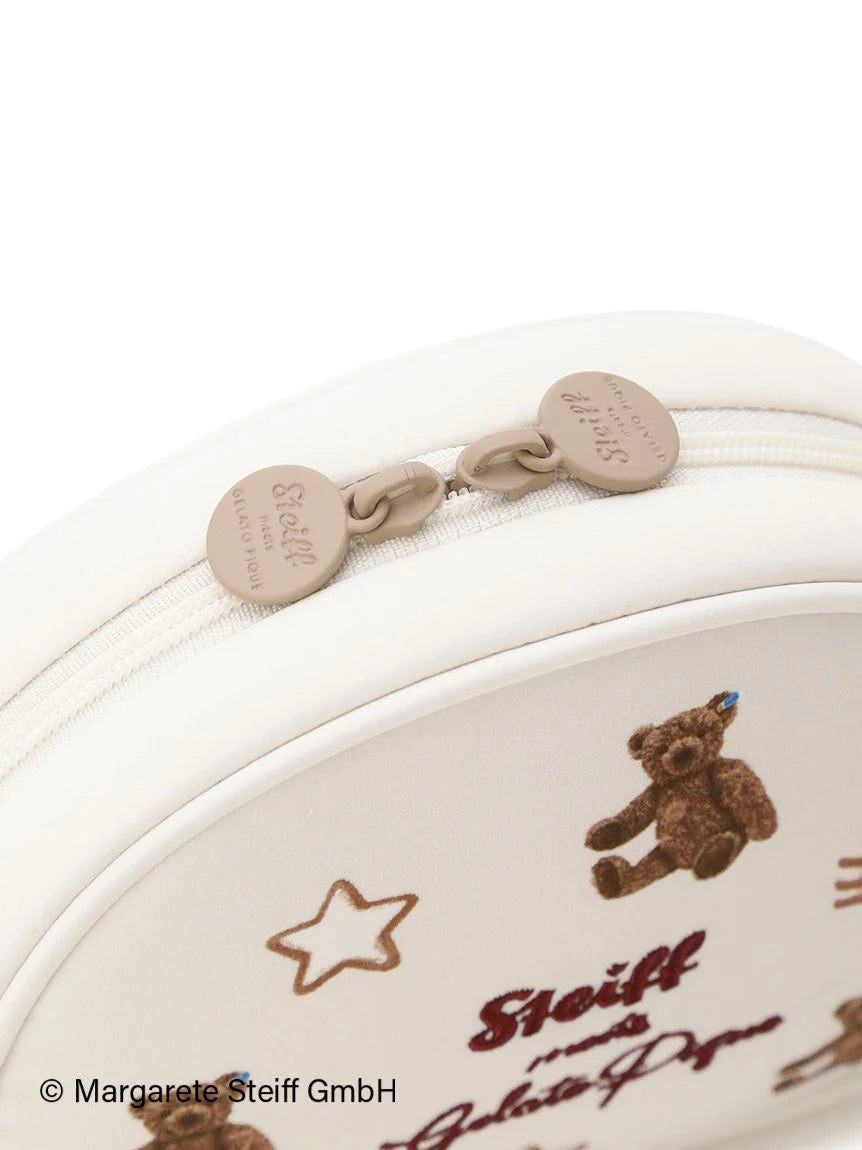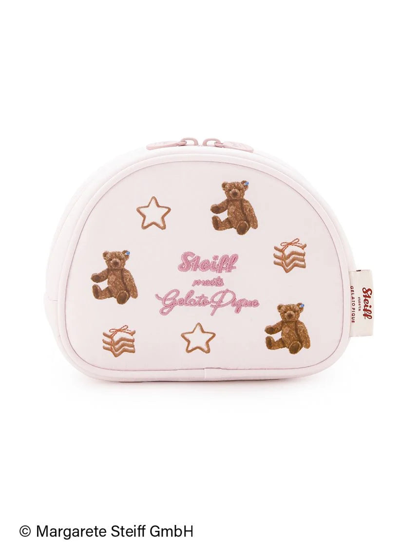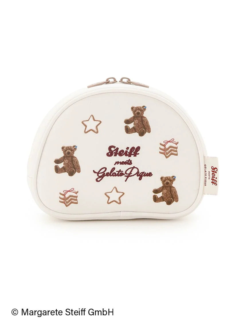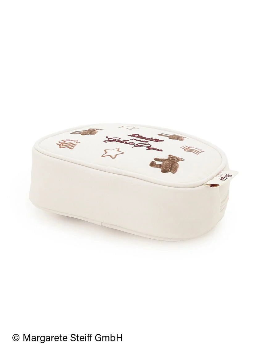 The long-awaited third collaboration series between Steiff, the renowned teddy bear brand, and gelato pique has arrived. This time, the theme is "Hexenhaus" (candy house), reminiscent of Christmas in Germany, where Steiff was born. This pouch features an all-over design featuring star-shaped cookies, a common Christmas treat in Germany, and "55PB", world's first teddy bear created by Steiff in 1902. The center features embroidered brand logos. The shape and size makes it can be used for a variety of purposes, including as an everyday makeup pouch or to store small items. Available in two colors: cream and pink, this pouch would also make a great gift.