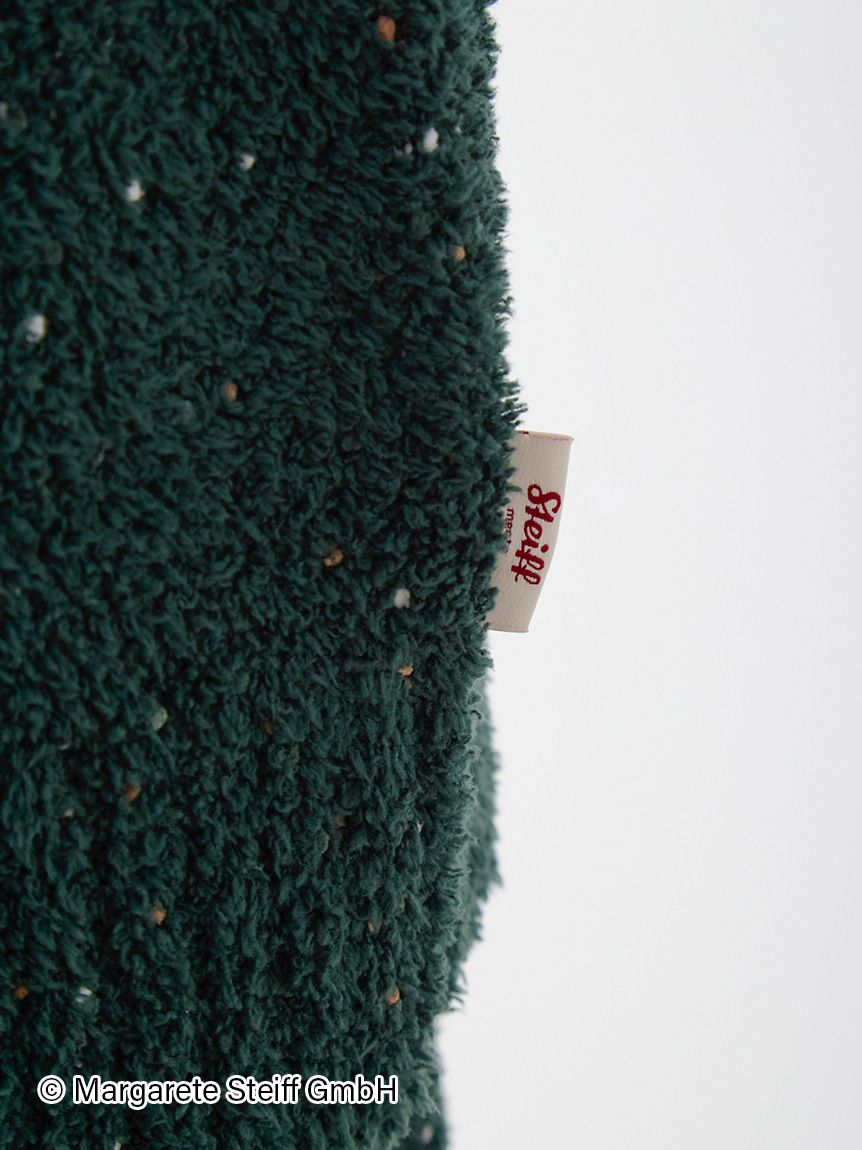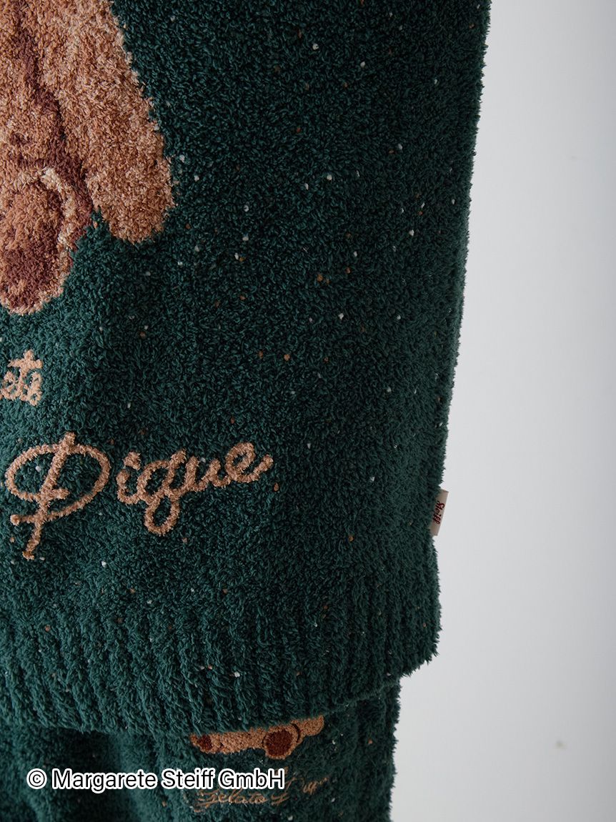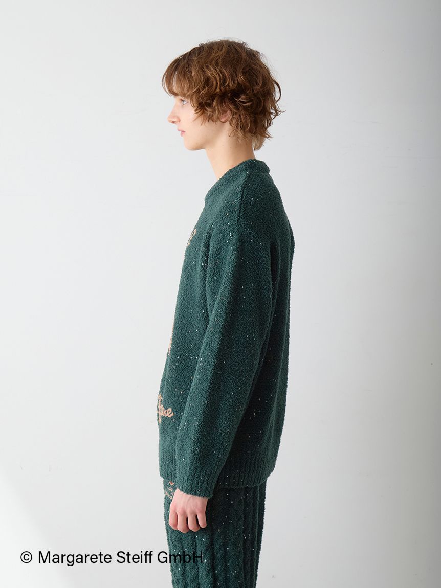 The long-awaited third collaboration series between Steiff, the renowned teddy bear brand, and gelato pique has arrived. This time, the theme is "Hexenhaus" (candy house), reminiscent of Christmas in Germany, where Steiff was born. This jacquard pullover is made of "powder" fabric with colored neps, evoking the sweet treats of Christmas. In an attractive seasonal deep green, the front of this pullover features "55PB", world's first teddy bear created by Steiff in 1902. We recommend pairing this item with the nep aran pants from the same collection.