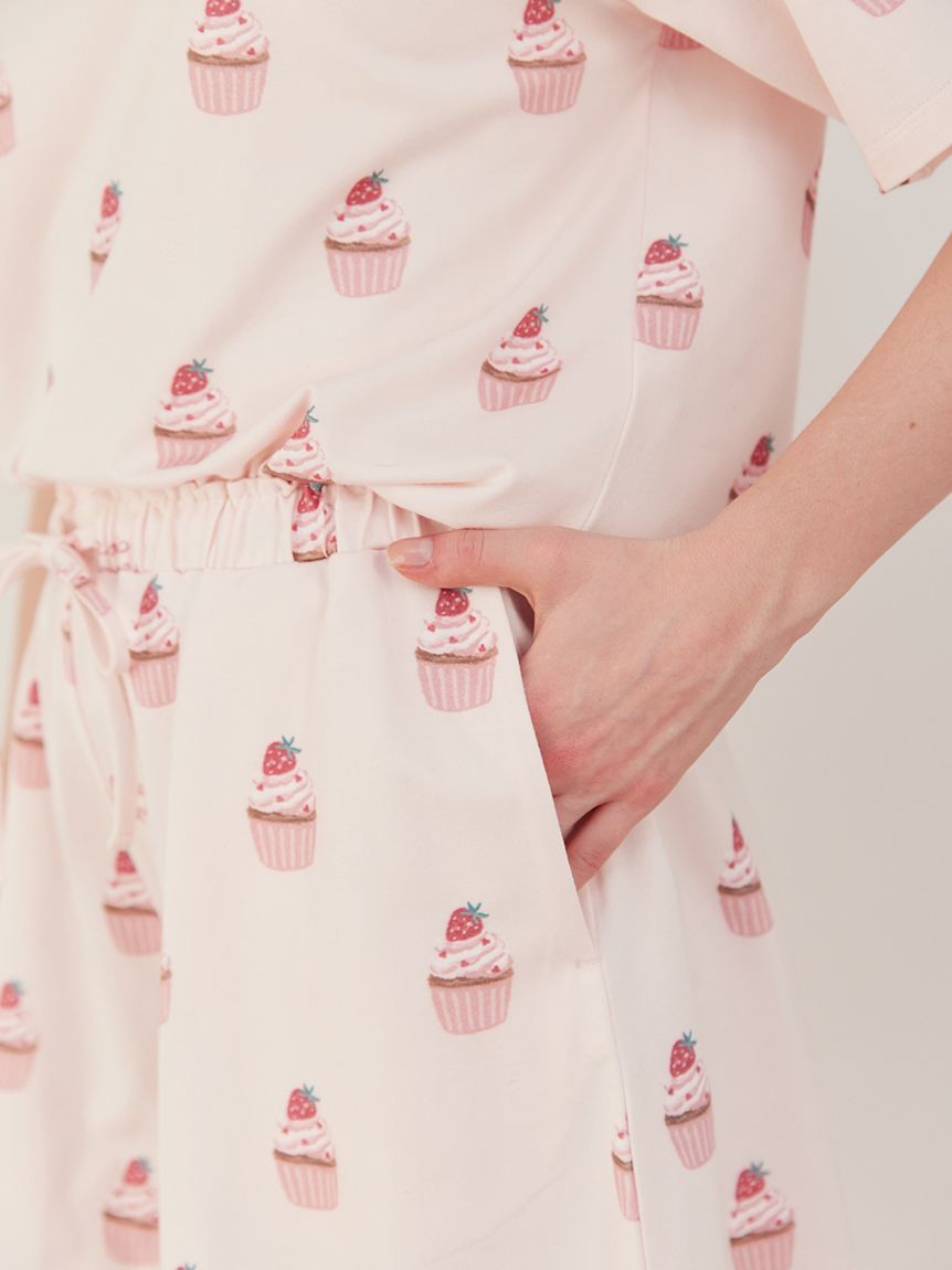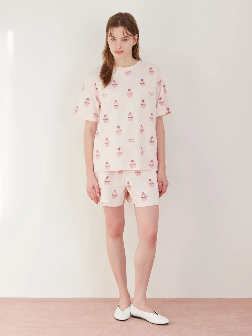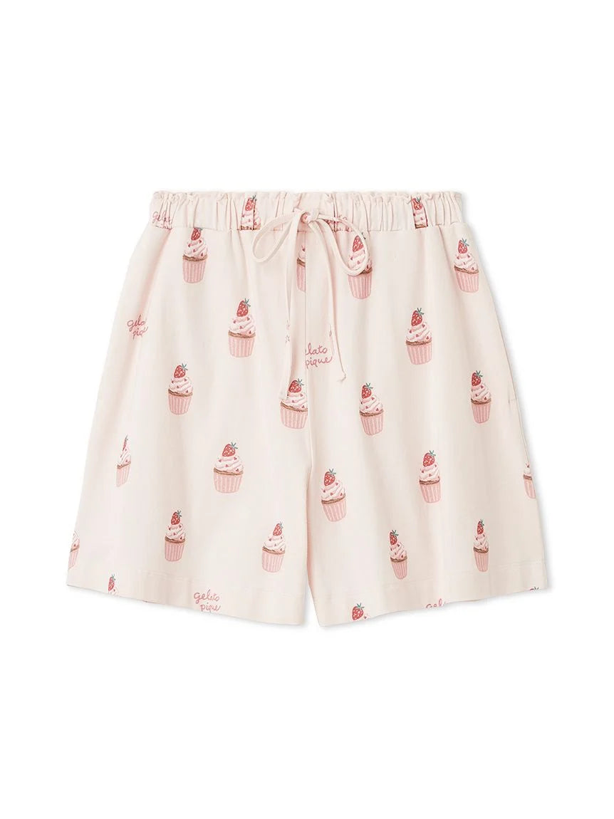 [Cupcake Print Shorts with Strawberries and Hearts]