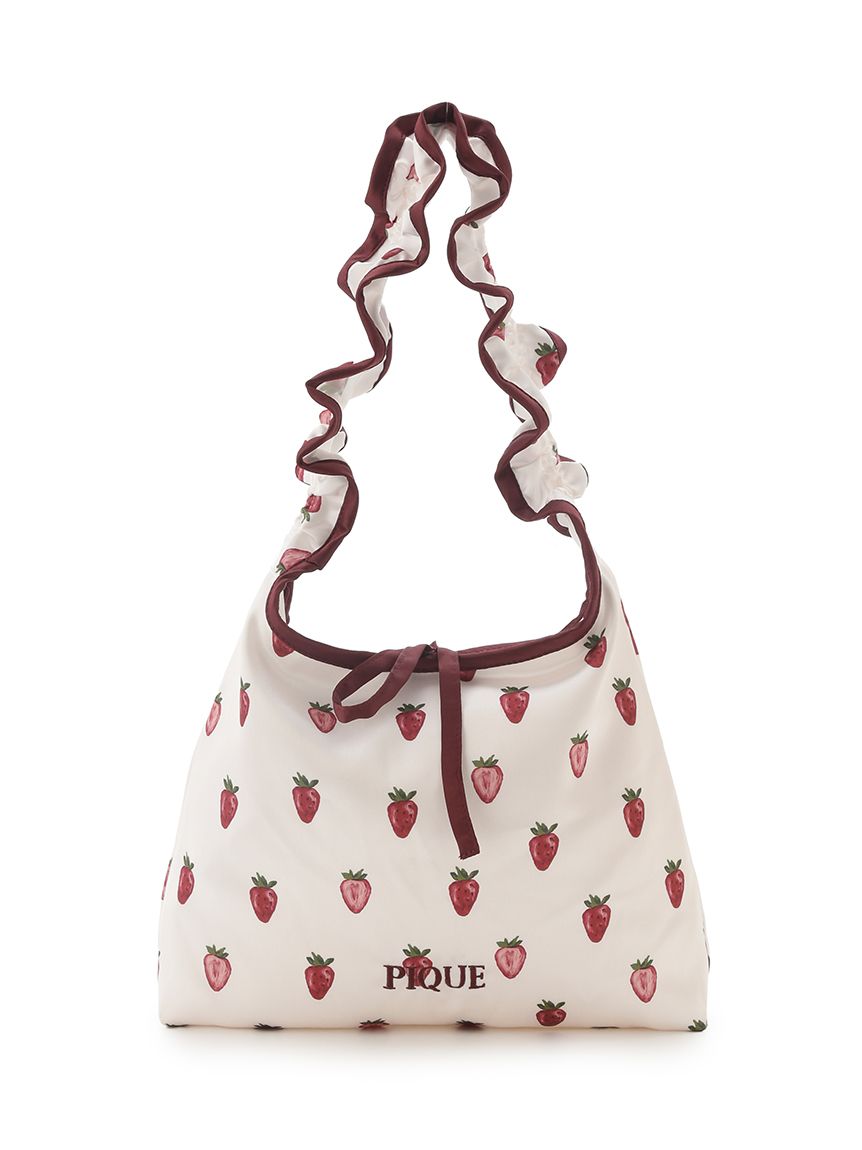 [Strawberry Print Mini Bag with Gathered Handles]