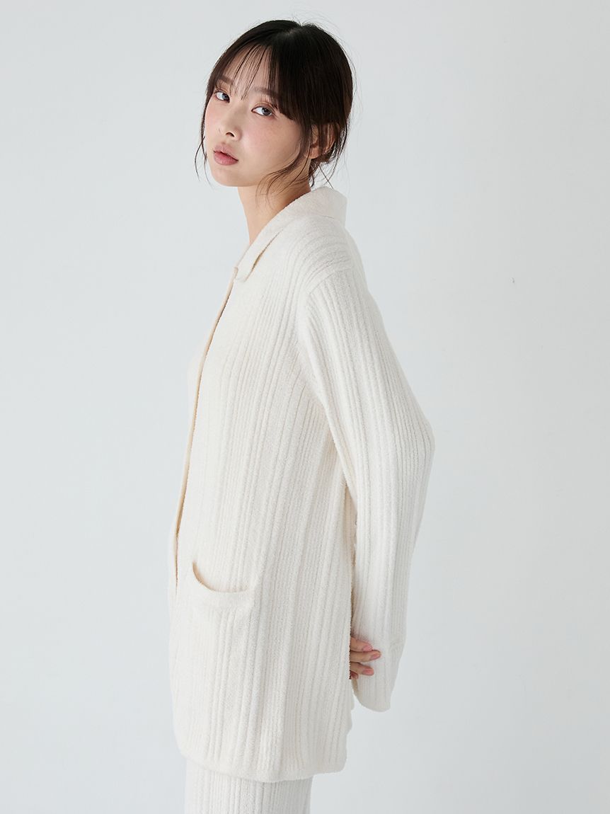 This smooth-feeling cardigan from the Temperature-Controlling Smoothie series is perfect for the upcoming transitional seasons. This collared cardigan features a long length that comfortably covers the hips. With irregular ribbing and a trendy collar, it looks stylish both as a cover-up and on its own. Made with yarn infused with temperature-regulating ingredients, it's comfortable even in times of extreme temperature fluctuations. It features pockets on both sides of the front and a logo embroidered on the cuffs. Available in ivory and pink, it also pairs well with the long pants from the same series.
