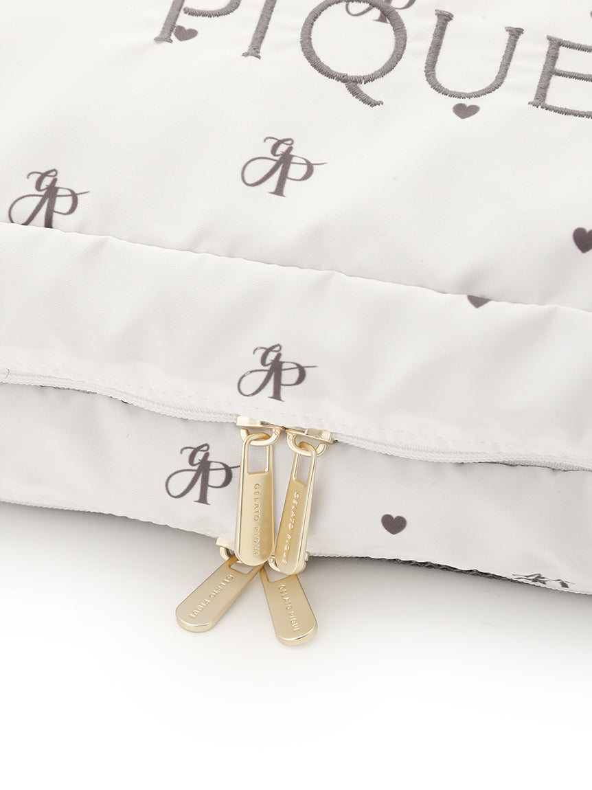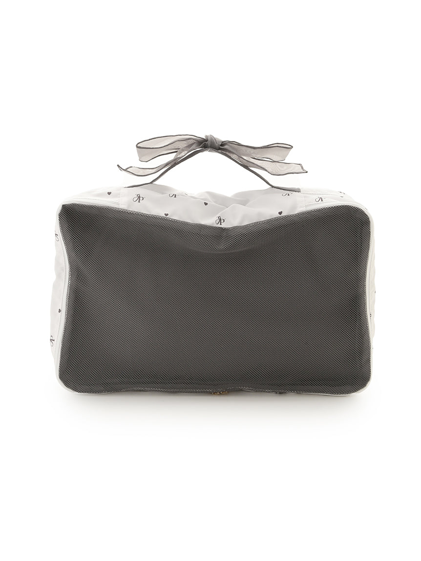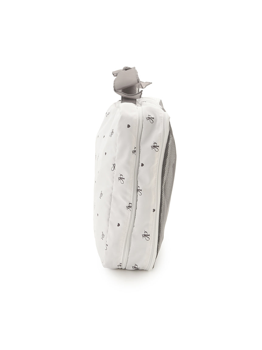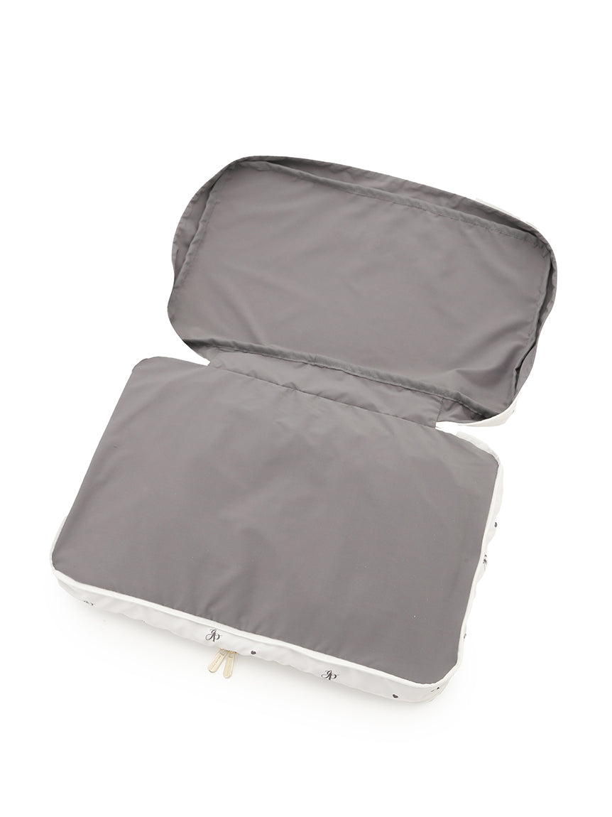 This cute travel pouch is large in size, that can hold up to two days worth of clothes for your trip. The front is decorated with cute decorations and logo embroidery, while a pocket space for used clothes is placed at the back. Available in monogram ivory and flowery pink, don't forget to also check out other traveling items in the collection.